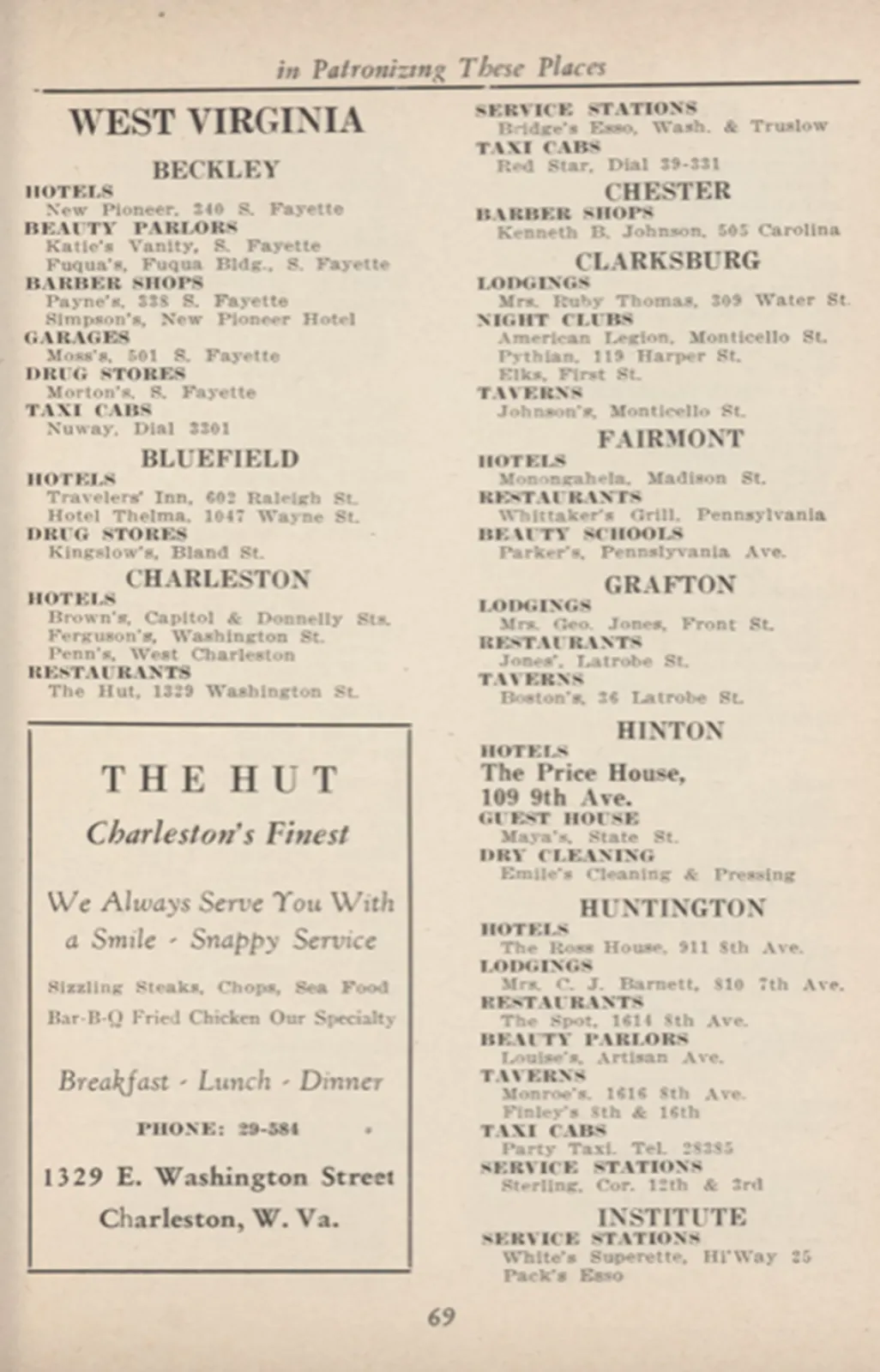 I was able to obtain a 1954 copy through Amazon and voila — listed is Hotel Thelma on Wayne Street. By the way, the structure in Bluefield, although fragile, is still standing. Listed also is Travelers’ Inn on Raleigh Street. The Inn moved to a building on Wayne Street years later which Mama Thelma purchased and operated. She ran several businesses simultaneously.
