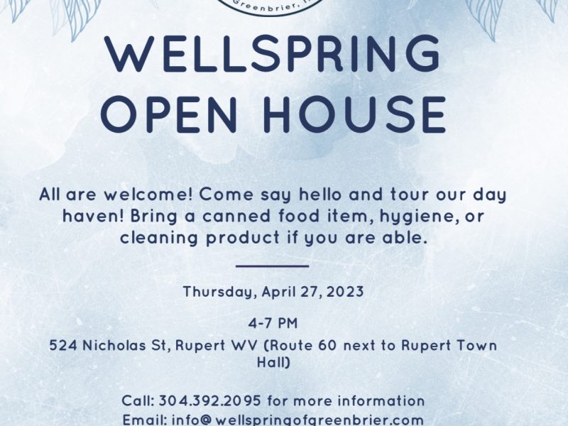 Wellspring of Greenbrier, Inc. invites our community to attend an Open House on Thursday April 27, 2023, from 4-7PM at our resource center in Rupert.