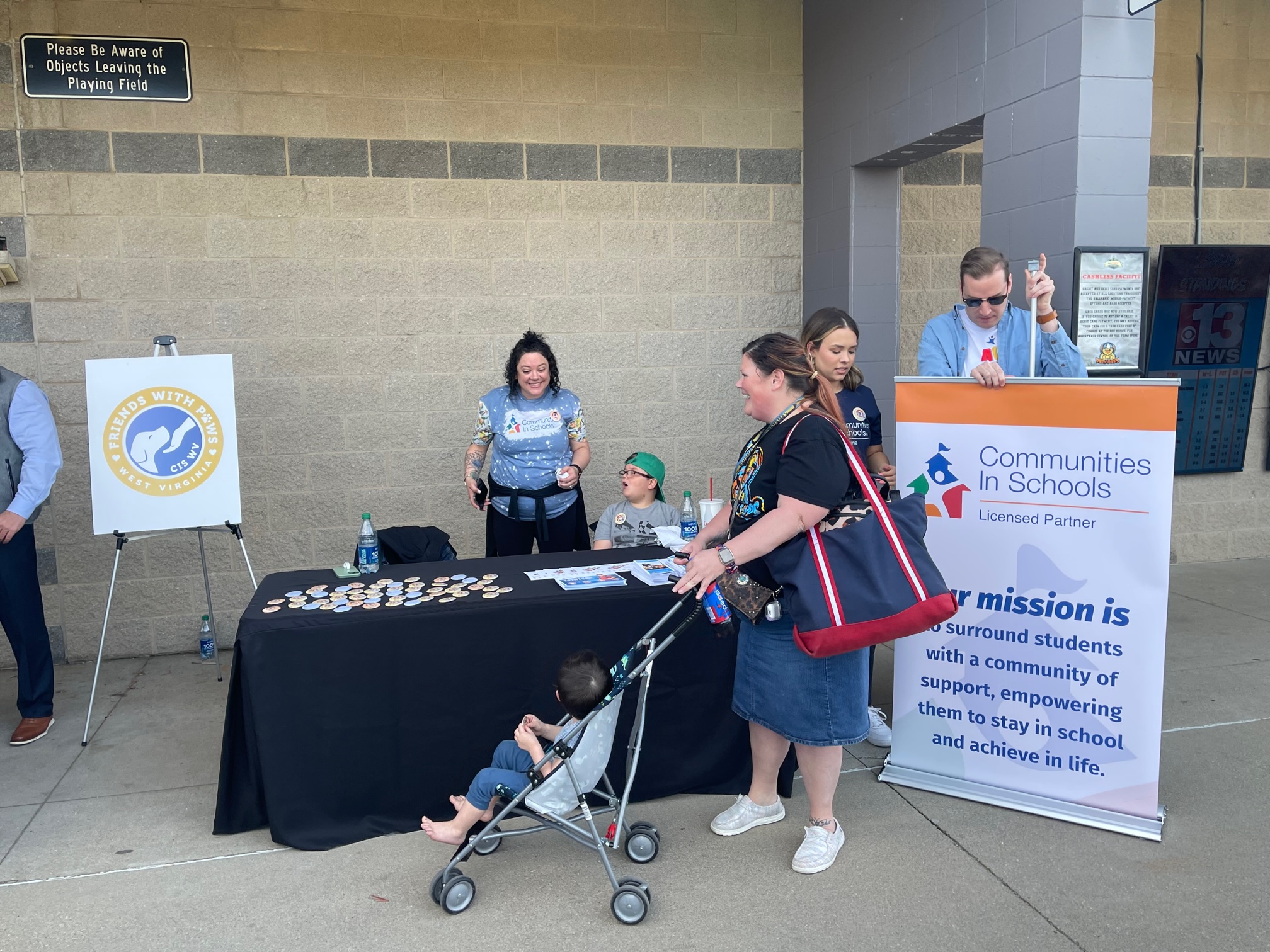 The governor and Babydog greeted fans and posed for pictures beside the Communities In Schools table on the main concourse for several innings, before heading off to another engagement. Representatives with Communities In Schools West Virginia were present during the game to host a school supply donation drive. Fans who donated school supplies were rewarded with a complimentary ticket to the Dirty Birds home game against the Lexington Counter Clocks on May 24.
