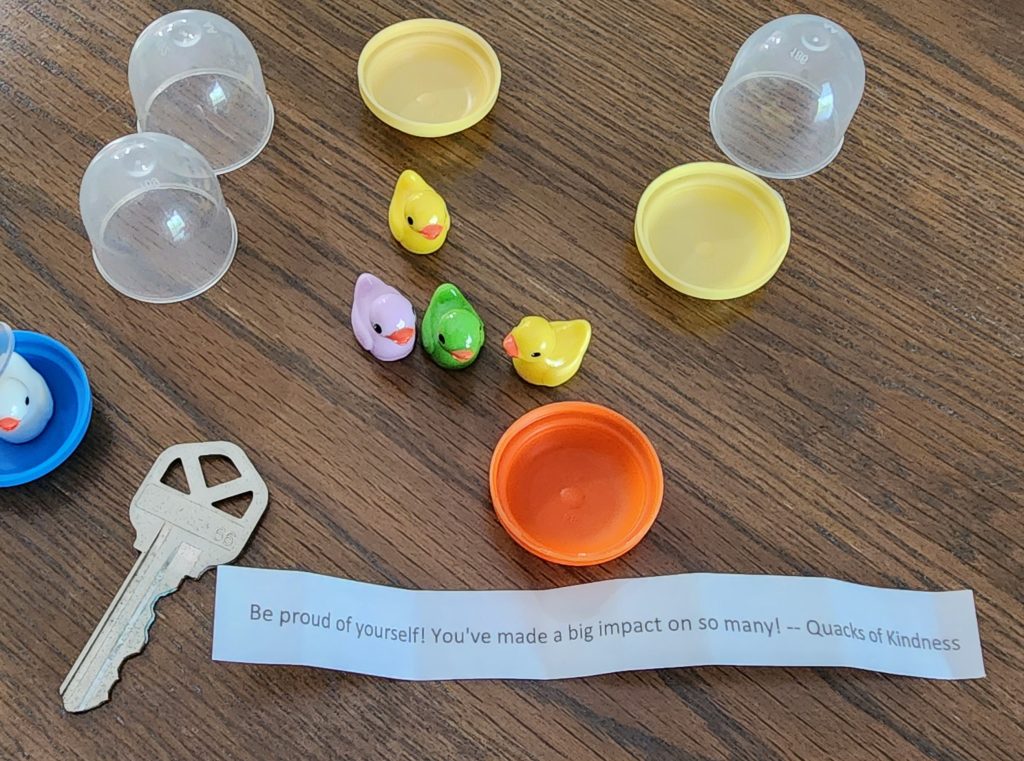 She started Quacks for Kindness, a simple activity meant to uplift people in her community. How does it work? She writes an encouraging message and places it inside a capsule with a plastic duck. She then hides the duck where it can be easily found.