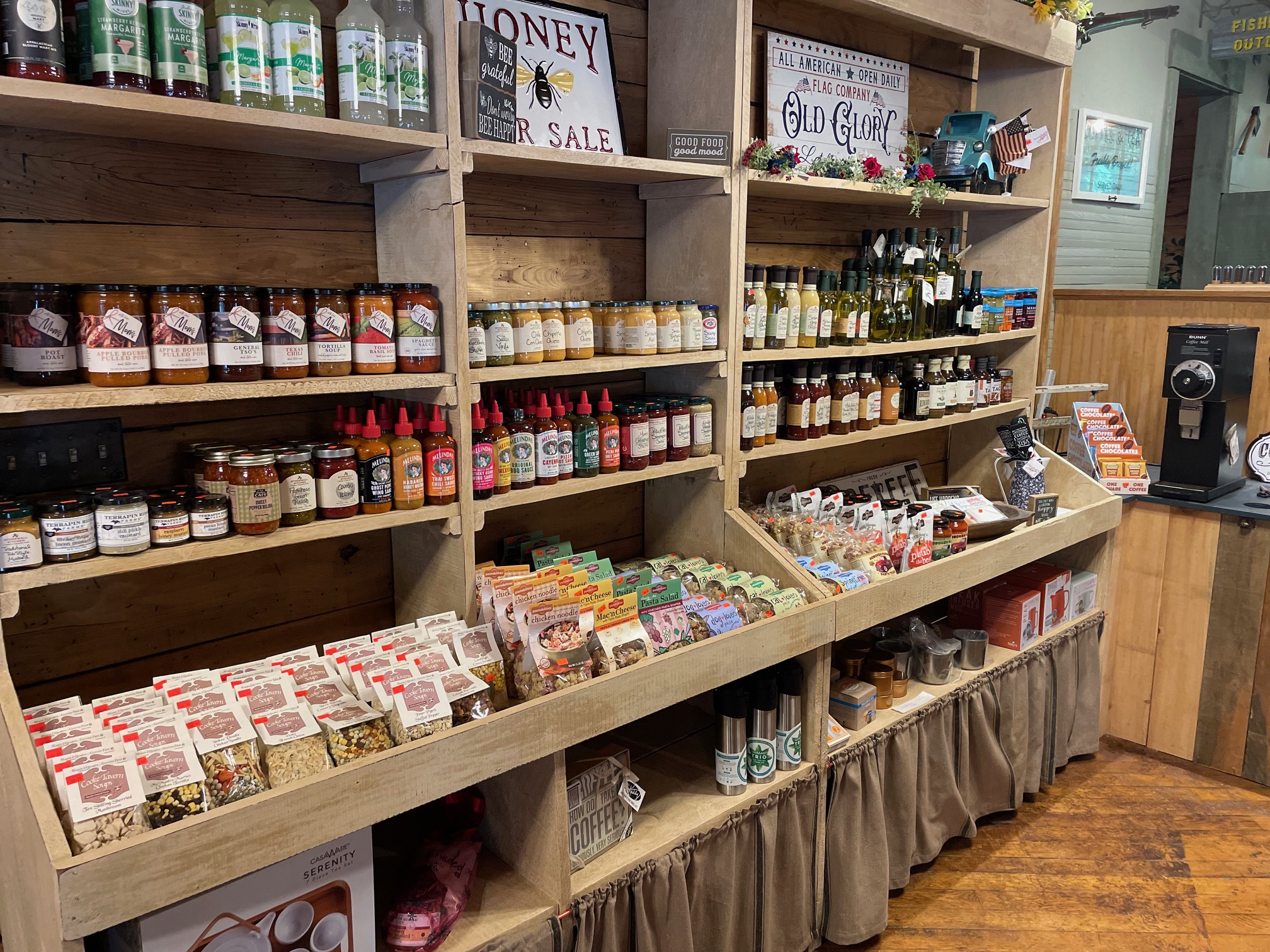 The Old Gap Mills Country Store blends the old with the new seamlessly. Richly-hued wood floors lead to immaculately clean shelves stocked with new items.