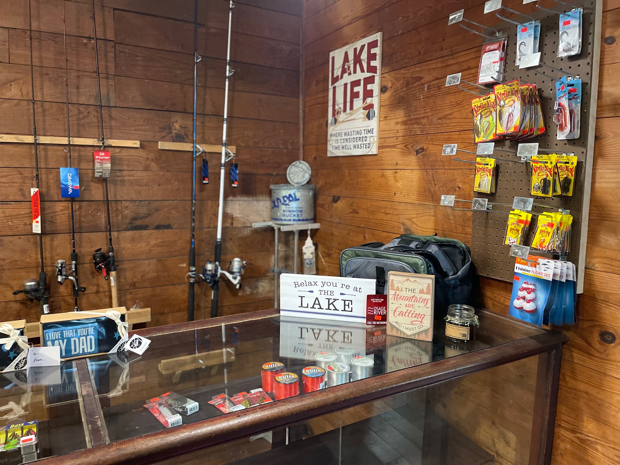The outdoor section contains fishing and hunting gear, which is perfectly placed for guests to Moncove Lake.