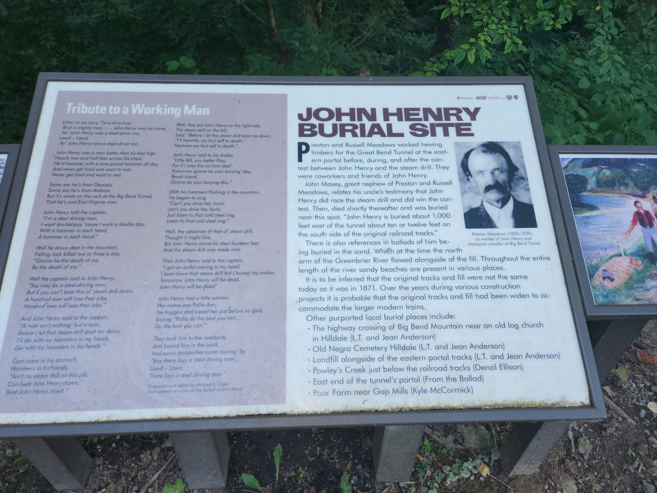 A former slave named John Henry might have worked for the C&O Railroad from 1870-1872. He might have raced a steam drill digging the Big Bend Tunnel, Henry’s muscular frame and intrepid soul victorious in the contest, but his heart overexerted to the point of death. It’s man versus machine. It’s labor versus capitol. It’s a black citizen striving for a new life in a finally-free America.