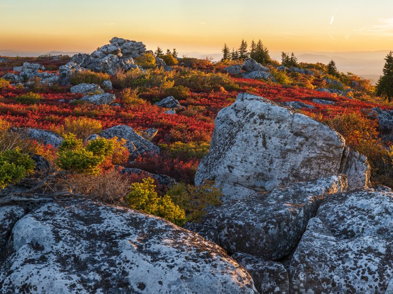 This image showcases Dolly Sods just as the rising sun illuminates the Autumn landscape.