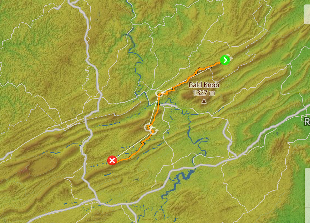 That thermal took him all the way to Big Walker, but he was too low to climb over it. He was forced to land in a farmer’s field there. He made it 46 miles, flew for nearly four hours, and hasn’t given up hope that his path can lead to a new record.