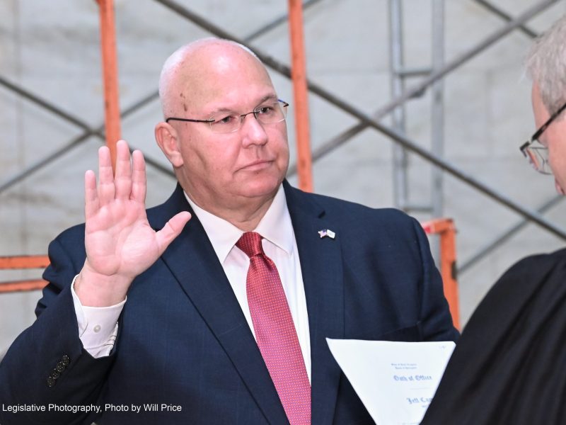 The new Delegate had previously taken the oath of office, having served in the House of Delegates from 2017-2020, but he is believed to be the first member to take that oath during a House Chamber renovation. Article VI of the West Virginia Constitution requires the oaths for Delegates and Senators to “be administered in the hall of the house to which the member is elected.”