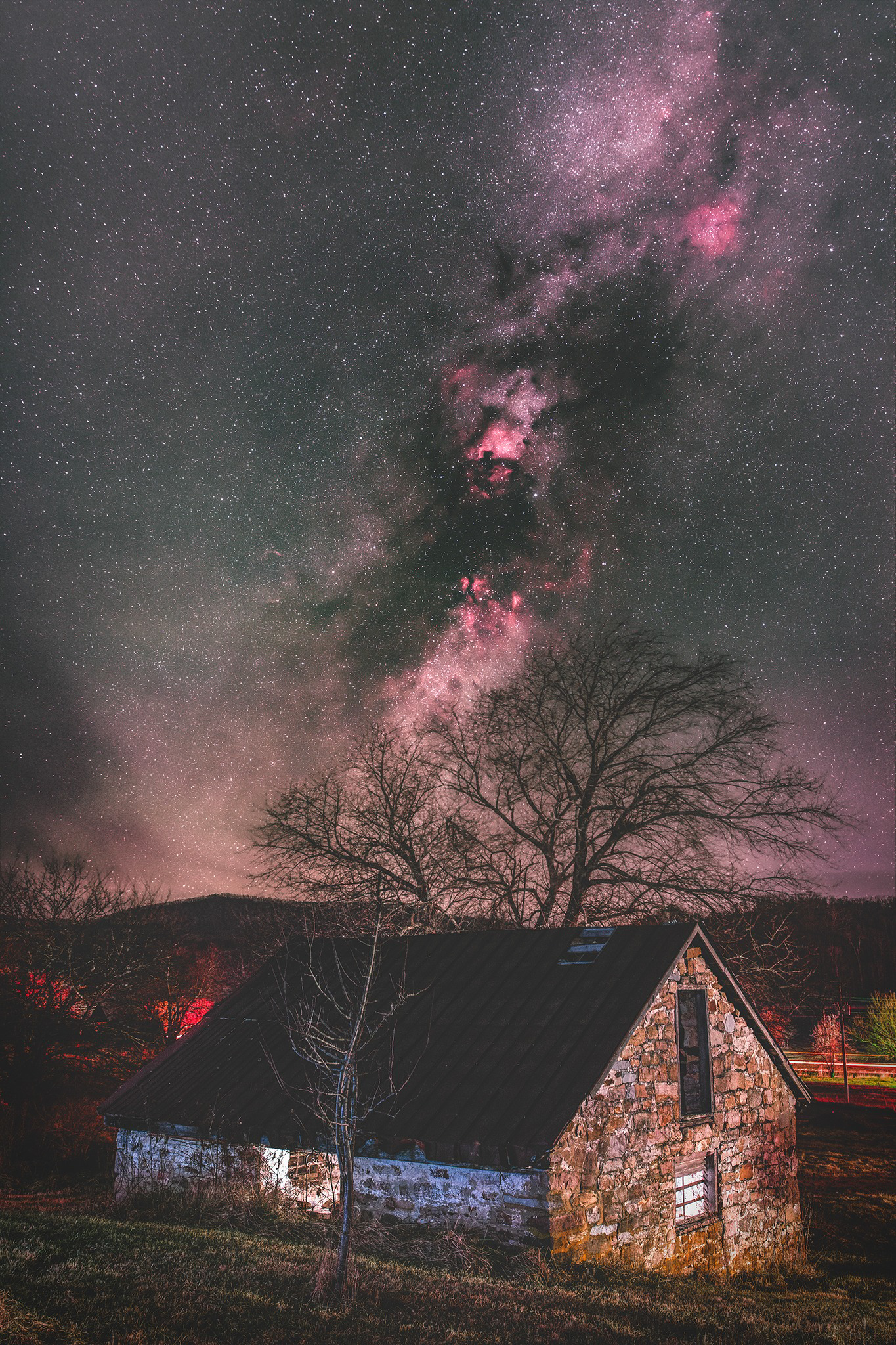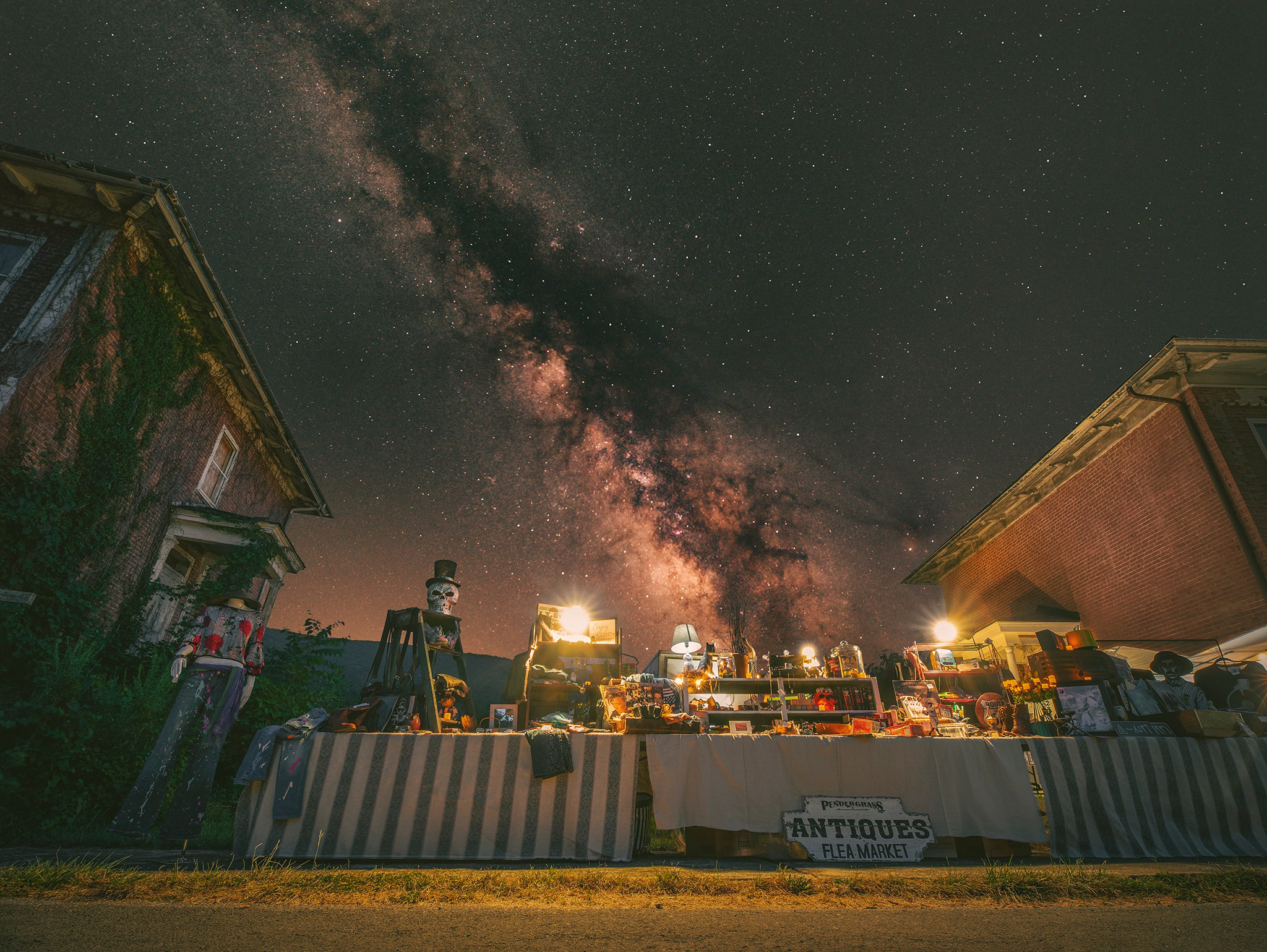 This awesome image was taken by photographer Dave Green during the recent, “Fling in the Springs” festival where vendors had a few very interesting tables set up. Dave managed to capture the rising milkyway over the spooky scene! Wow!