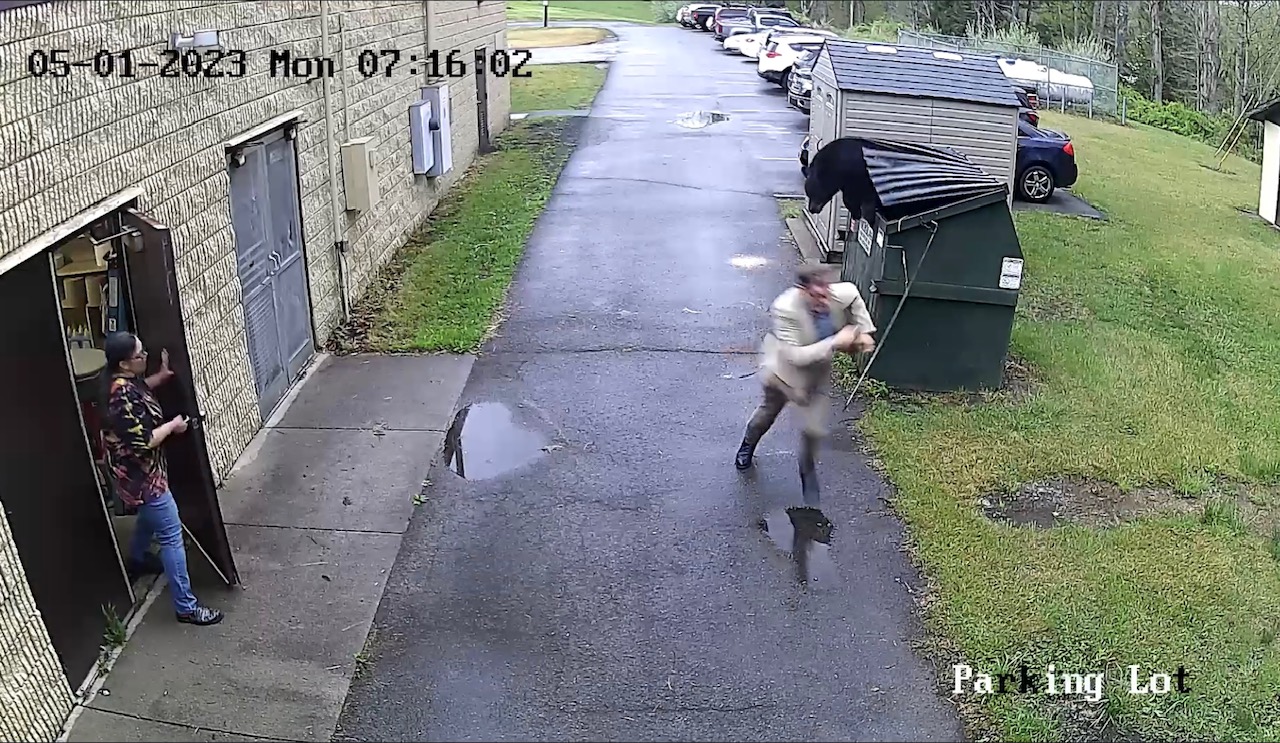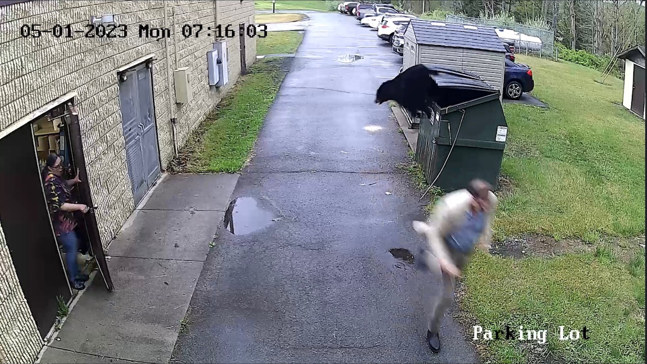 Principal James Marsh, of Zela Elementary School in Nicholas County, W.Va., was hard at work before students came to school on a Monday morning last spring preparing for the day ahead. At 7:16am as part of his normal routine, he unlocked a dumpster, only to have a large black bear pop out!