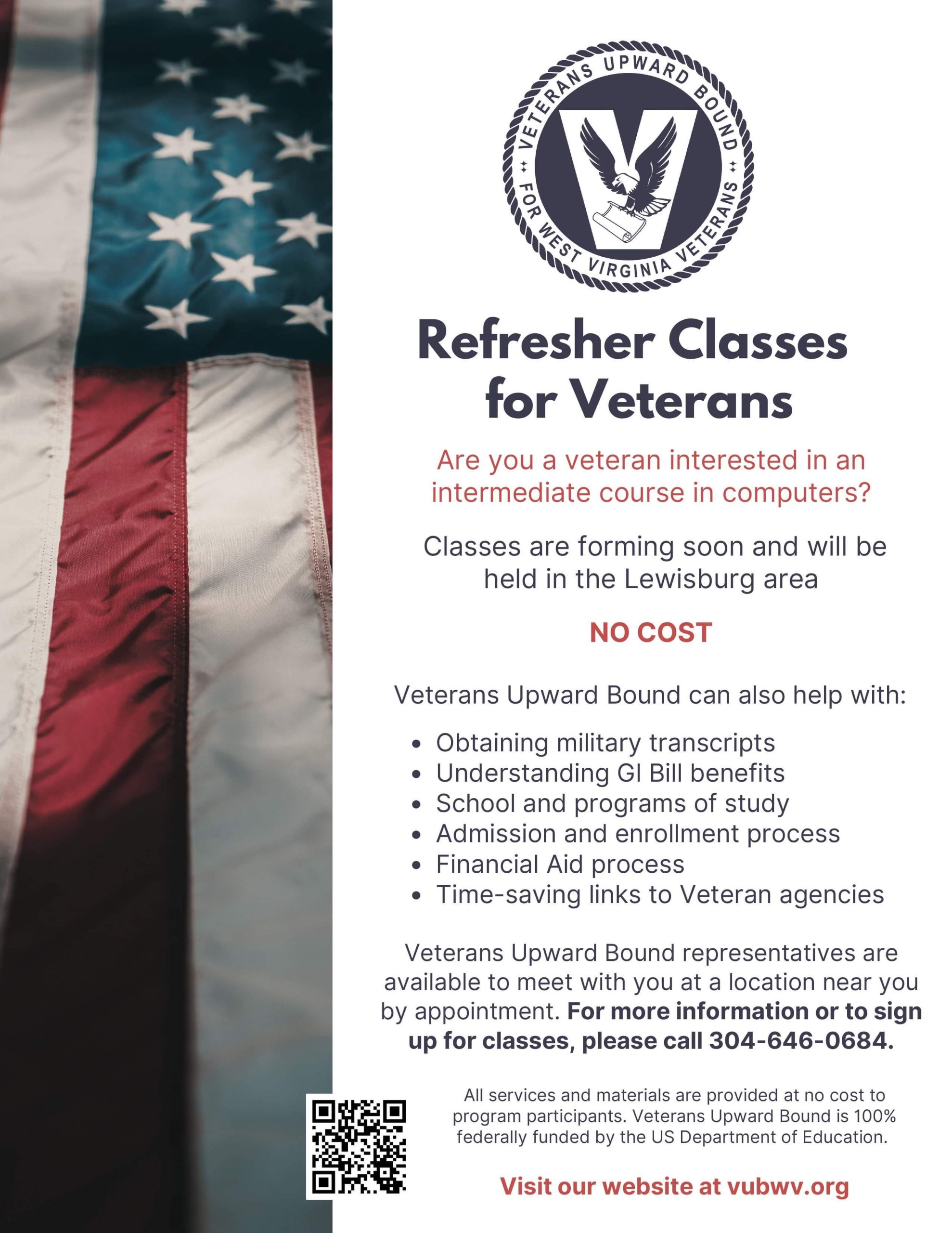 To sign up, veterans are asked to call Curtis Pauley at 304-646-0684. There is no charge for the classes.