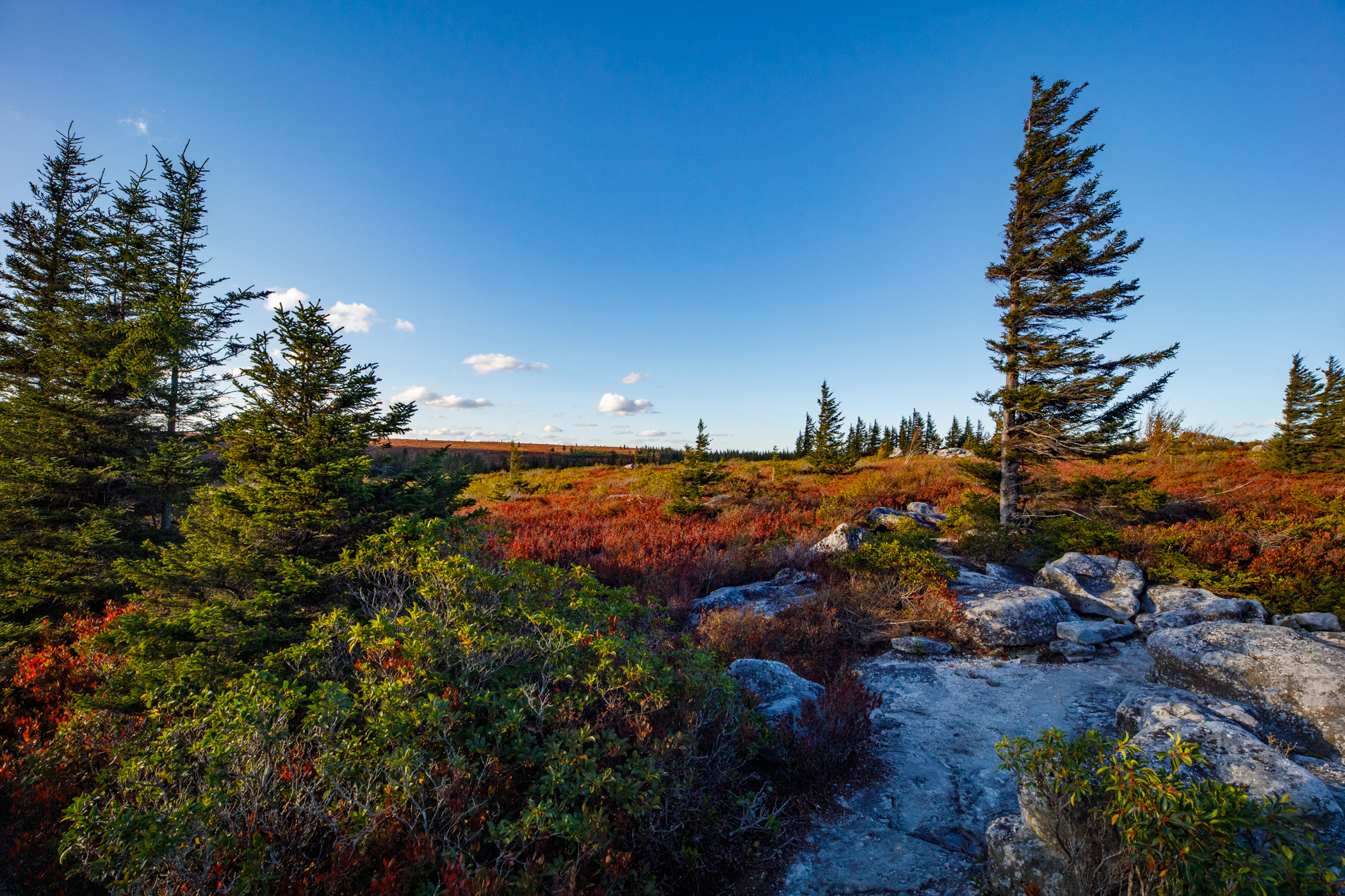 One of the standout moments during my recent adventures was in Dolly Sods. The blueberry and huckleberry bushes were just past their peak color, but they still presented an awe-inspiring sea of red. It was my first time experiencing Dolly Sods during this season, and I must say it felt truly magical. The landscape was glowing with color. A testament to the wonders of nature, and how West Virginia transforms into a painter’s palette during this time of the year.