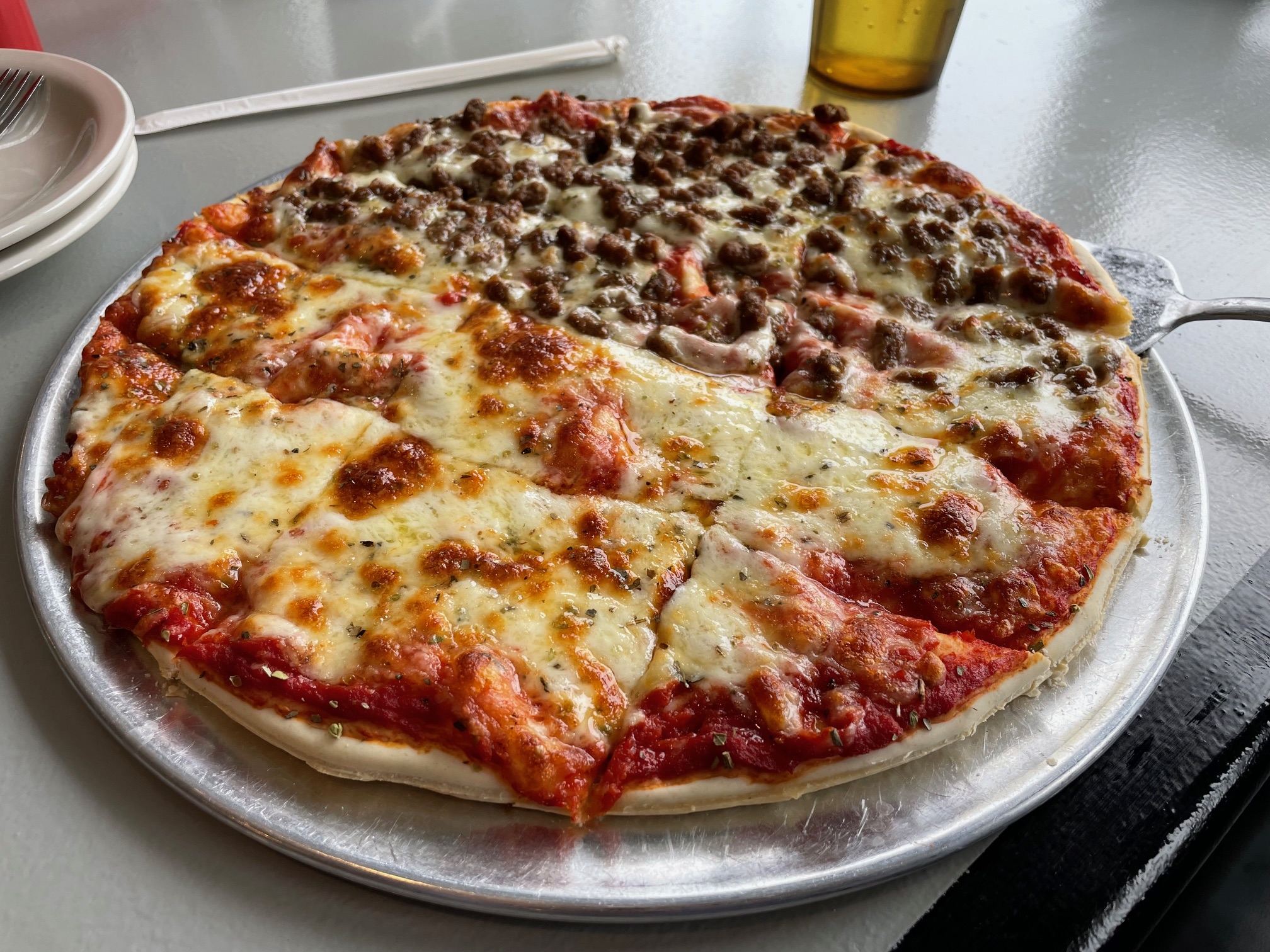 Talk about an underdog…Vandall’s is a family joint inside a gas station just off the interstate. You’d never guess the pies they’re slinging inside from the outside. But locals love it. It’s affordable, homemade, and the customer service is second to none. If you’re a person who likes to add a lot of custom toppings, Vandall’s is the place for you. You can get 14 toppings on a 16-inch pizza for $16.99! And did you know that it’s under the roof of the oldest store in Summers County? The building was originally constructed in 1854. Jeff and family have been turning out pizzas since 2013.