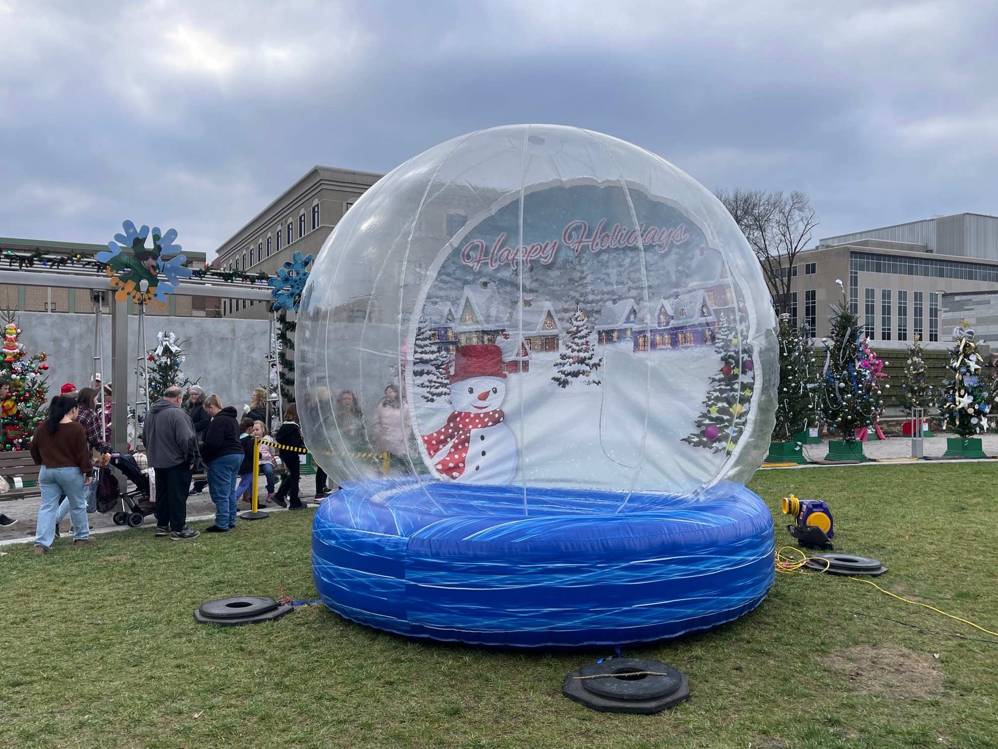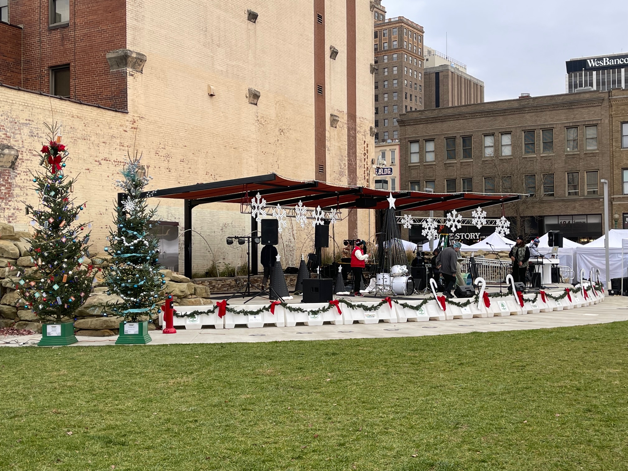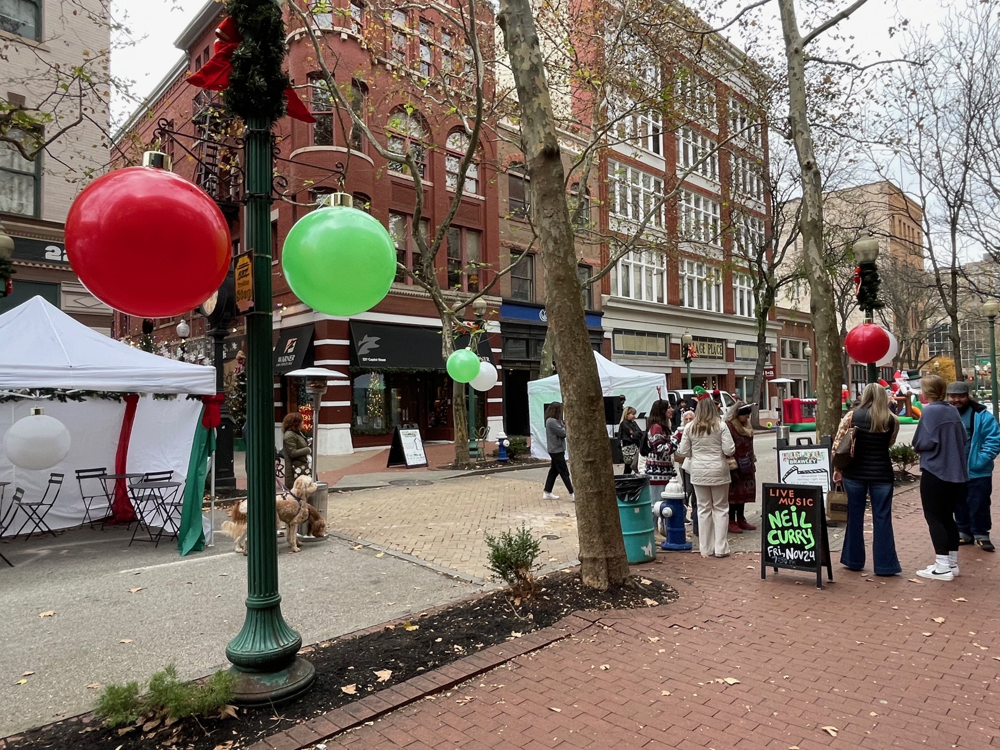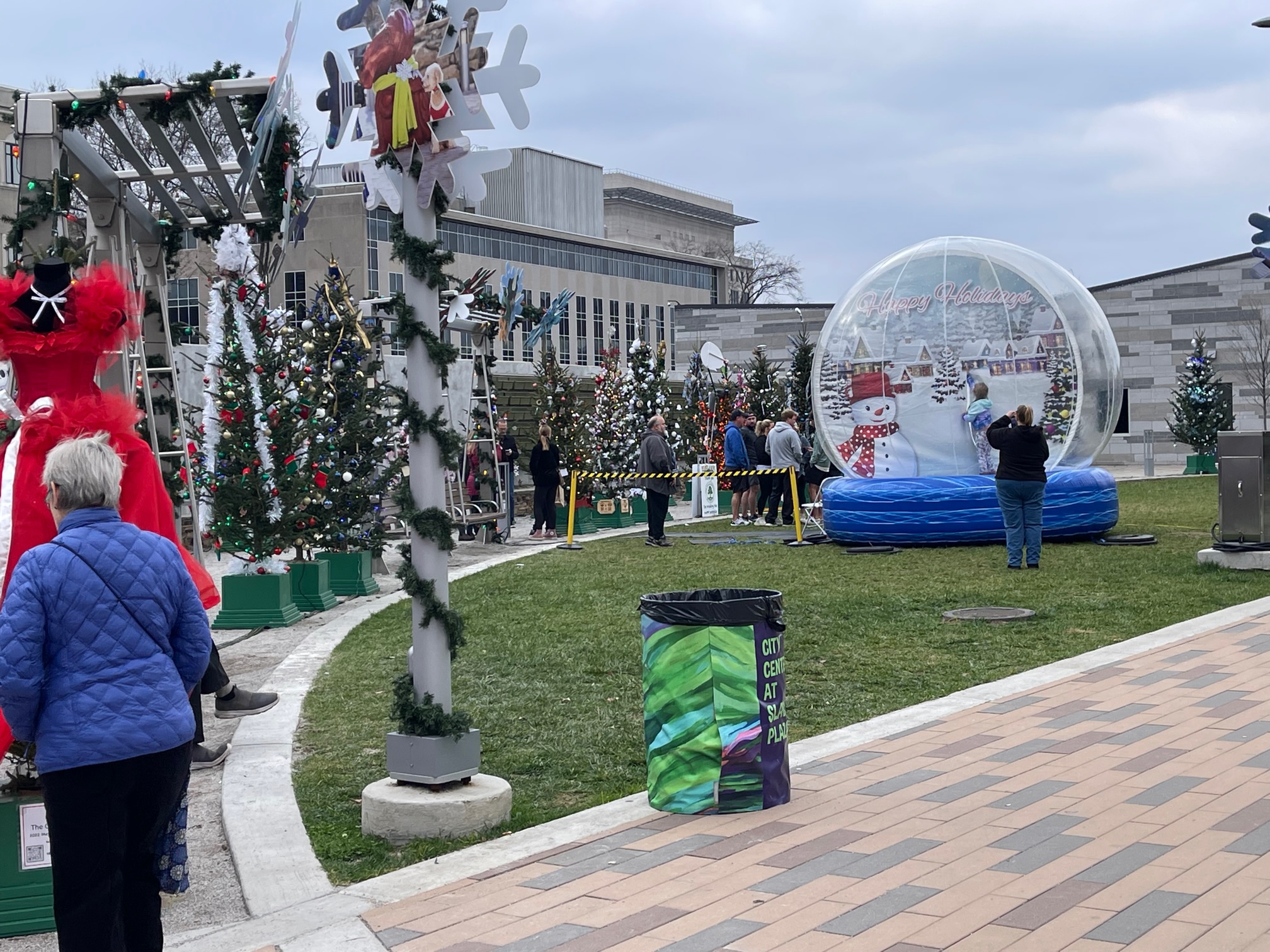 Artists and vendors, beautifully-decorated Christmas Trees, and a snow machine also line the Brawley Walkway. Not to be outdone, Slack Plaza more closely resembles the North Pole than the City Center, with a giant snow globe that the little ones can takes pictures inside of, and the City’s official Christmas Tree. Live music was also featured on Friday, and will continue all afternoon on Saturday.