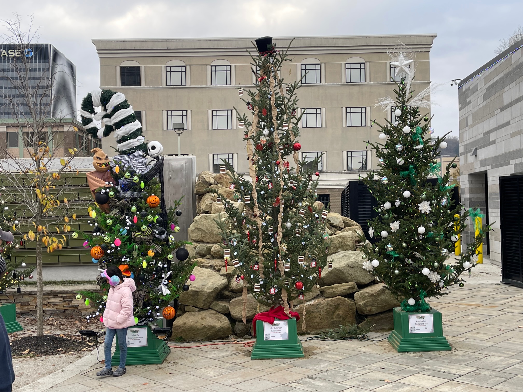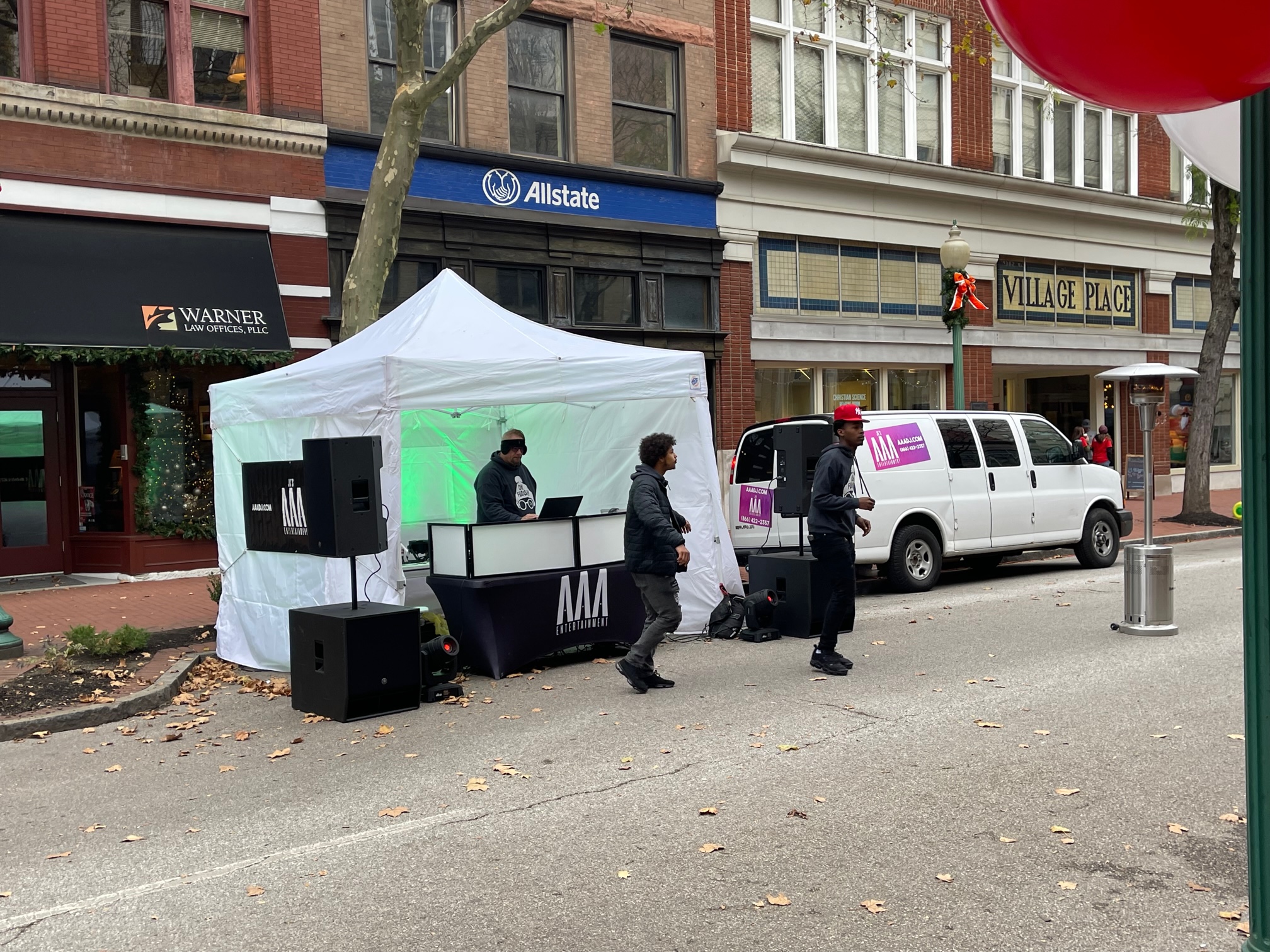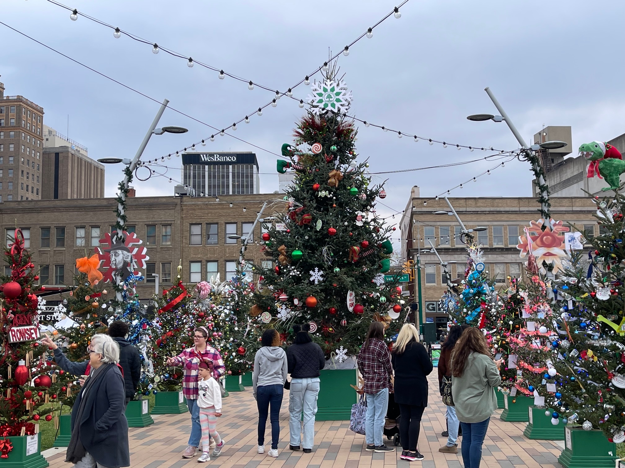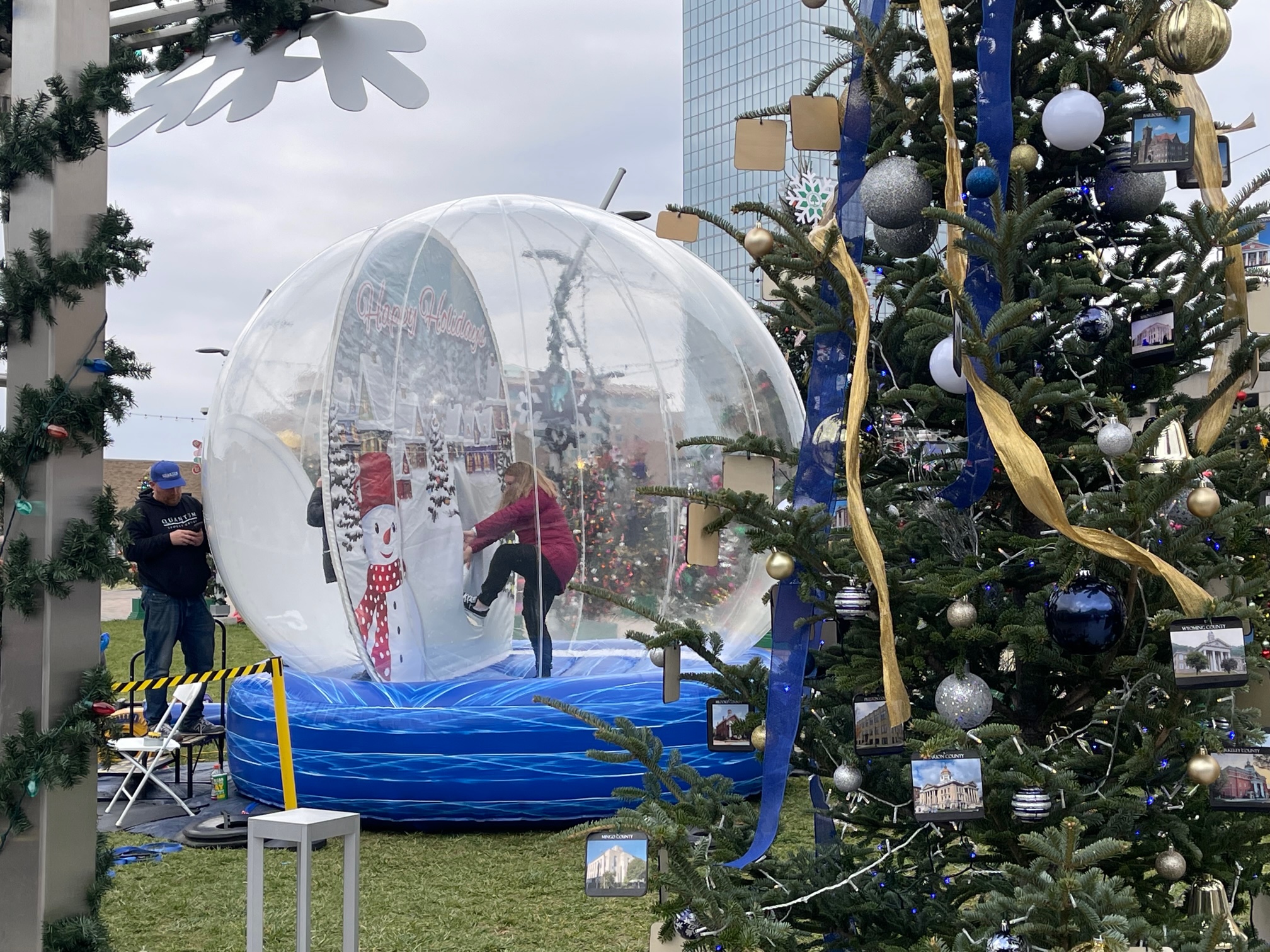 Artists and vendors, beautifully-decorated Christmas Trees, and a snow machine also line the Brawley Walkway. Not to be outdone, Slack Plaza more closely resembles the North Pole than the City Center, with a giant snow globe that the little ones can takes pictures inside of, and the City’s official Christmas Tree. Live music was also featured on Friday, and will continue all afternoon on Saturday.