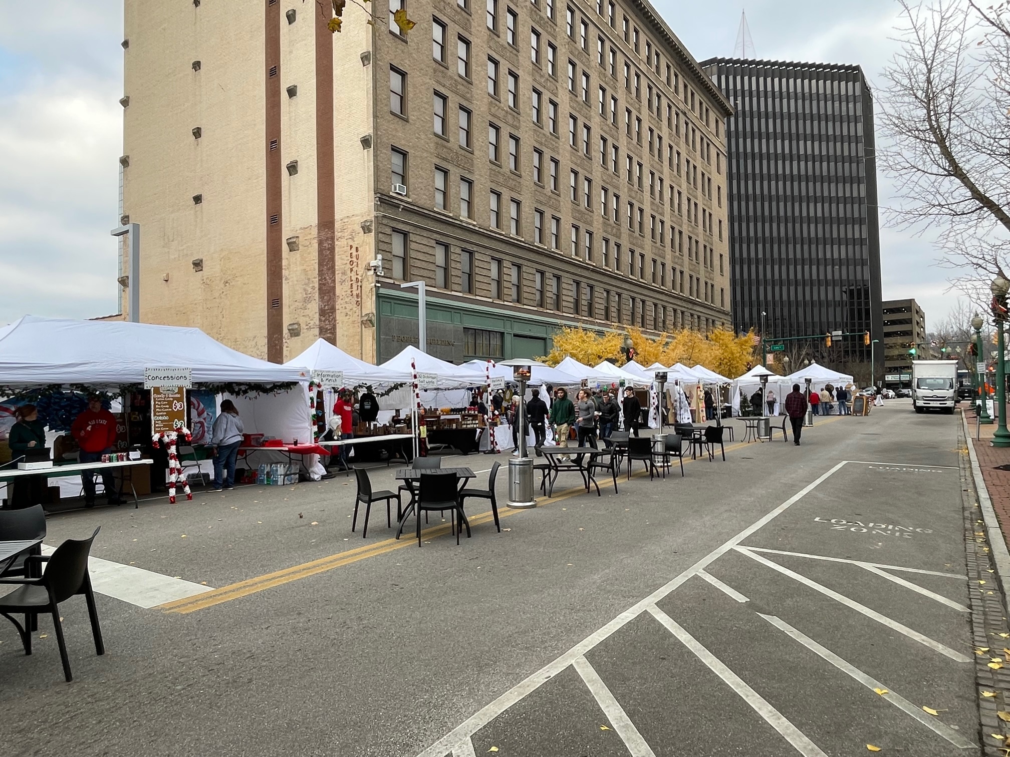 CHARLESTON, W.Va. – Downtown Charleston is getting into the Christmas spirit this weekend, with two days of holiday fun. With bounce houses, face painting, and giant slides on Capitol Street, artists and vendors up and down Summers Street, and the Brawley Walkway resembling a Norman Rockwell painting, there’s something merry for the whole family.