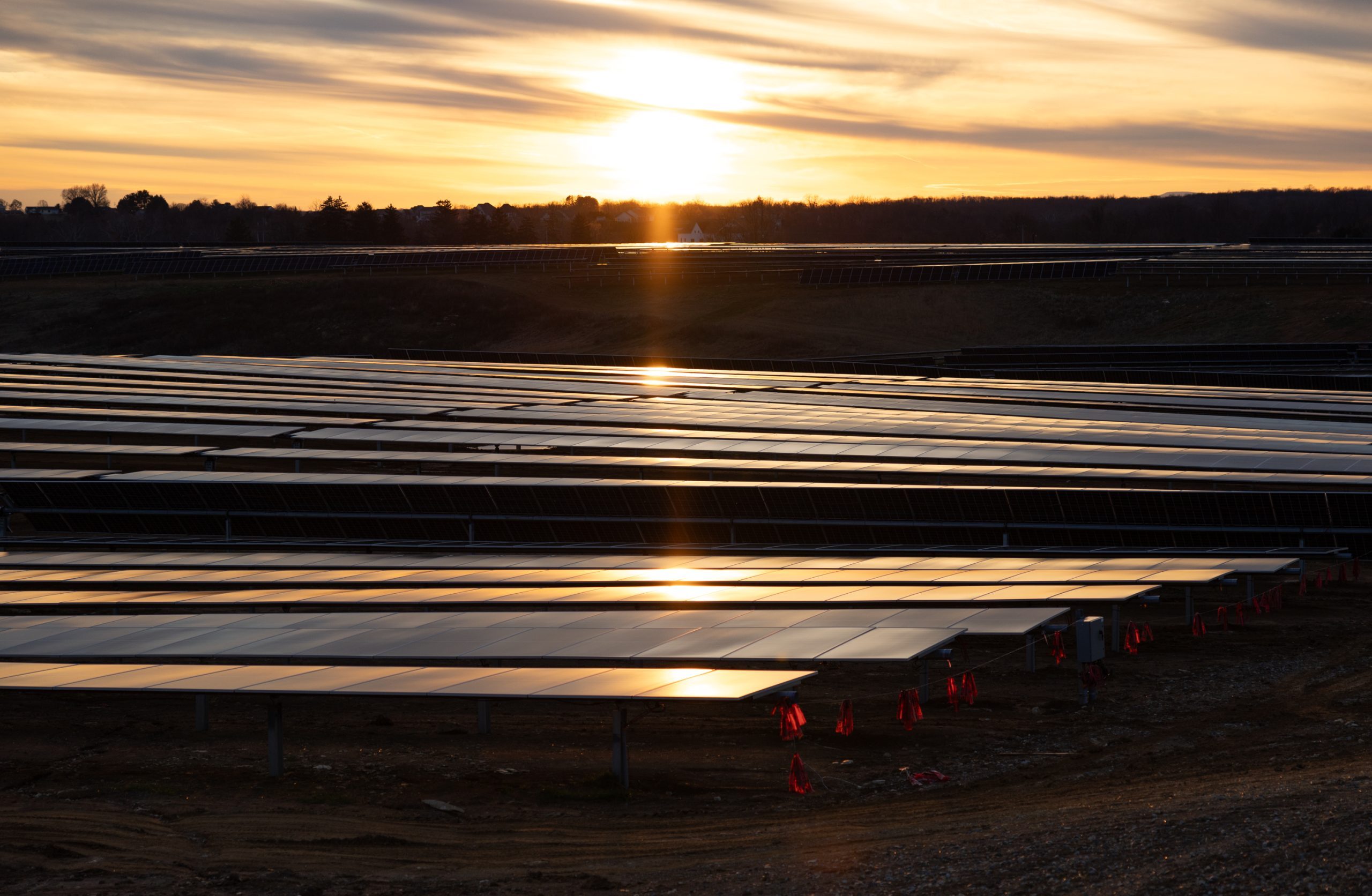 As the sun sets over the rolling hills of Jefferson County, light streaks through rows of solar panels that dot the landscape of the Blake Solar Project. The 516 acre OPD Energy project, near Charles Town, WV, is one of the biggest new solar projects in the state. The solar installation will produce 80 megawatts of energy, which is the equivalent of powering 80,000-90,000 homes.