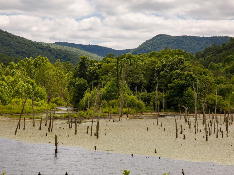 Tuckahoe Lake, constructed in 1995 and managed by the West Virginia Division of Natural Resources, offers a unique landscape that’s a haven for anglers and photographers. The standing dead trees that dot the lake’s surface create an almost ethereal mood, their skeletal silhouettes reflected in the calm waters. It’s a sight that never fails to inspire awe and wonder in me.