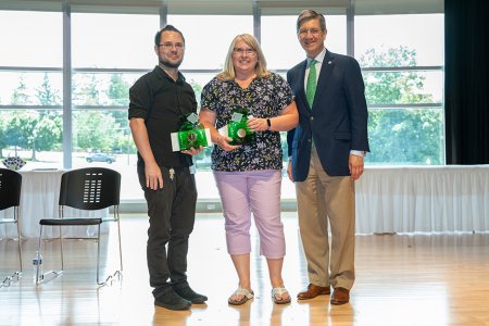 The President’s Outstanding Employee Award, given annually to individuals identified through a vote by WVSOM faculty and staff as outstanding employees for the current academic year, recognizes exceptional and dedicated service. Twelve employees were nominated. They were Richard Aleshire-Ramsey, Kristie Bridges, Ph.D., Douglas Brown, Courtney Eleazer, Ph.D., Kathy Hoke, Christopher Kennedy, D.O., Carrie Lawrence, Scott Maxwell, Donna Polk, Jennifer Seams, Dawn Thomas and Jill Trent. This year’s winners were Richard Aleshire-Ramsey, WVSOM’s assistant director of food services, and Carrie Lawrence, senior payroll coordinator in the Office of Business Affairs.