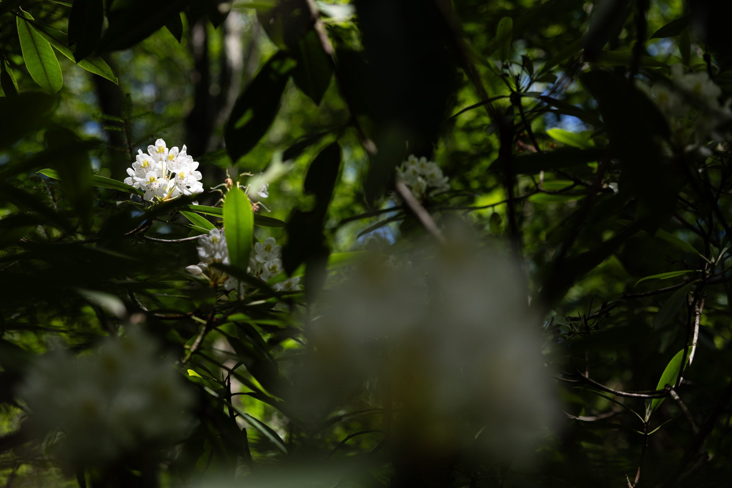 Continuing my search, I traveled to Pocahontas County and ventured into the Cranberry Glades Wilderness. Here, the white rhododendrons were literally all over the place, their blooms adding a touch of elegance to the unique wetland environment.