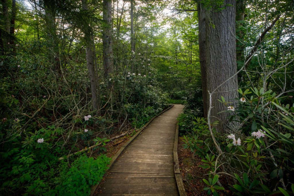 Even as many of Dolly Sods Wilderness Area’s backcountry trails are lined with rhododendrons, Fisher Spring Run Trail stands out, as it makes for proper rhododendron habitat with its impressive thickets under a shaded canopy.