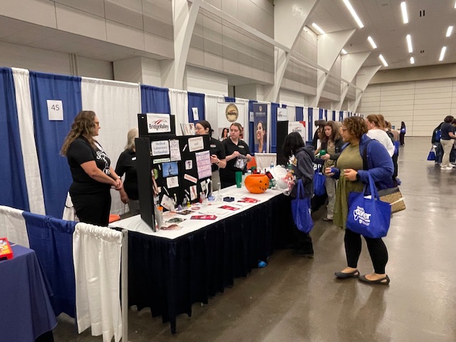 “They’re loving the giveaways,” Lane said. There’s a sno-cone machine, a coffee bar – but they’re really excited to play with the ‘tools of the trade’ as well. They’re getting to actually be hands-on with the equipment used in that field.”