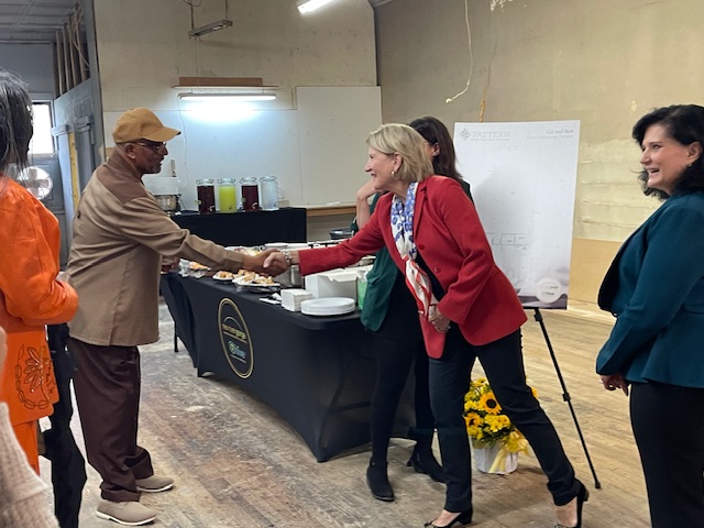 Jina Belcher, executive director of the NRGRDA, shared her own story of how sewing helped her achieve her dreams, and how she hopes PATTERN will help others.