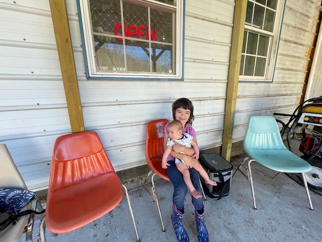 “Alexandra had a big role in picking out where we were going to live,” Anna says as Alexandra holds her little brother inside the business. “She really liked this place. She and Jesse went to the bookstore in Lewisburg, ate lunch at Stardust, and she played in the fields.”