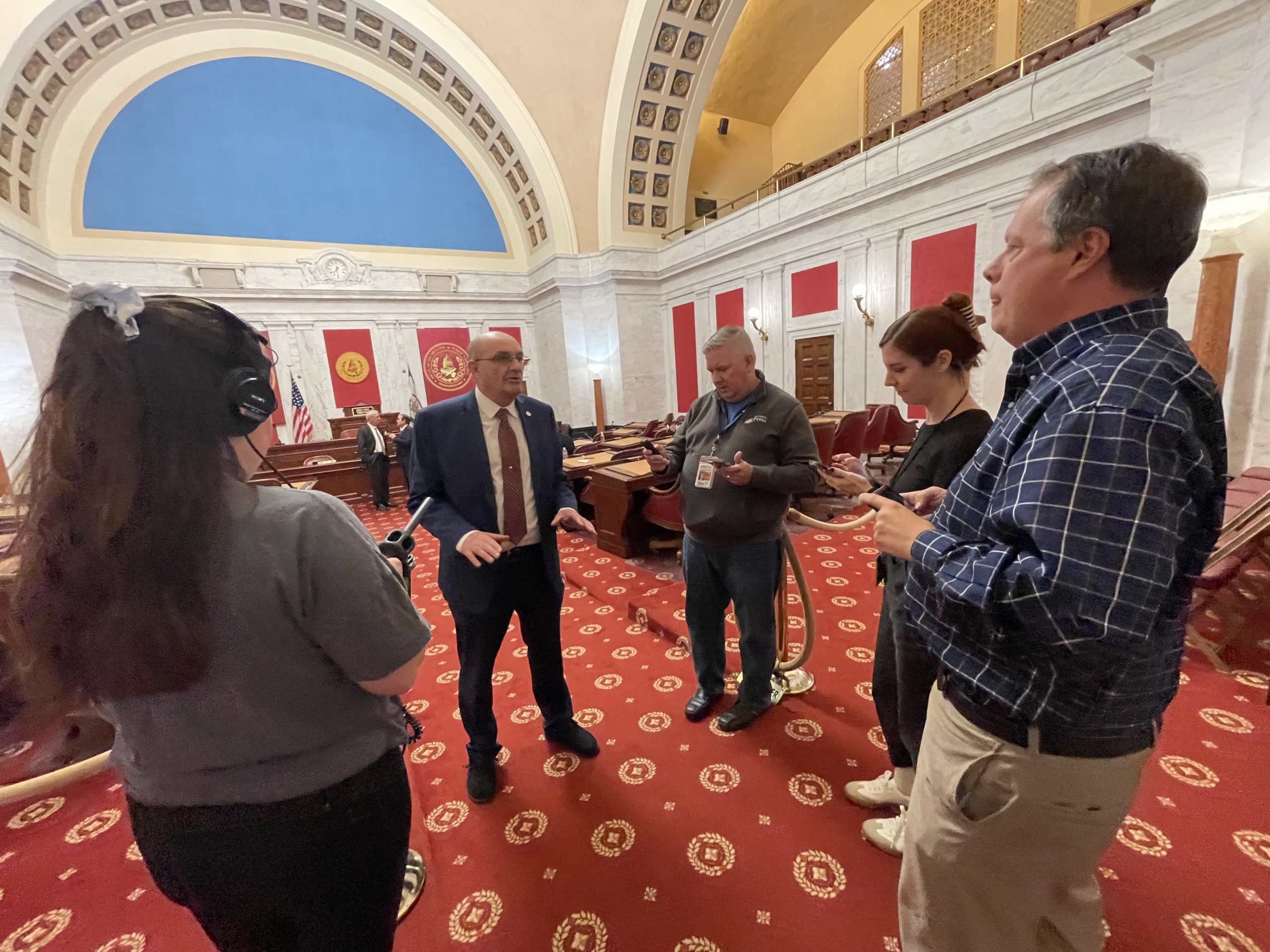 “If there’s ever an example of the American dream, he’s standing in front of you,” Smith told reporters gathered in the Senate Chamber just before 8 p.m. Sunday night. “I came from a poor upbringing and worked hard in my political career.”