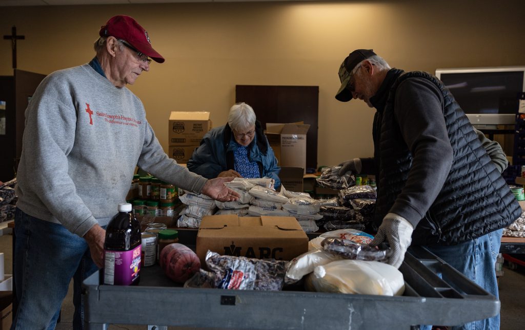 “When the truck arrives with their donations, we set it all up and have people bag the items if necessary,” said Enos. “We have already gone through the cars and placed small sticky notes indicating how many families are inside each one. This way, when we bring out the carts, we will know how much to load, allowing people to stay in their vehicles.”