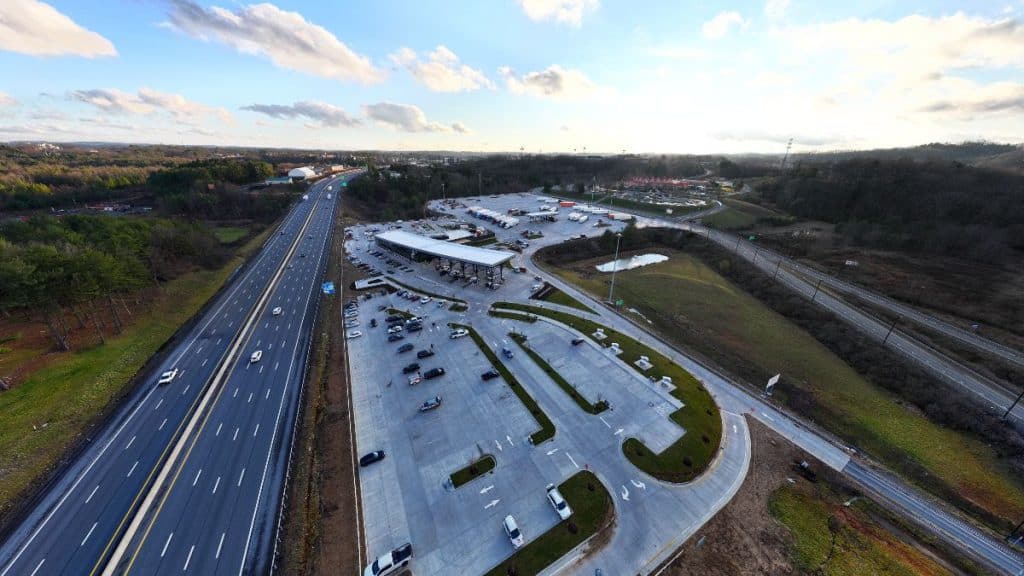 The plaza features a Starbucks, Wendy’s, Popeye’s, and Mountain State Market, which will run 24/7. Other amenities offered are increased restroom facilities, EV charging stations, a drive-through, and separated vehicle and tractor-trailer fueling options.
