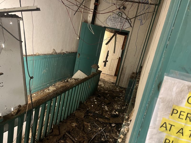 County Clerk Jeremy Meadows confirmed that no damage was done to the precious records housed in the Upper Record Room, with only slight water damage reported in the downstairs record room. Assessor Sarah Martin noted that her office experienced minor water damage, while Sheriff Mike Heller reported similar minor water damage to the tax office. Fortunately, no water or fire affected the law enforcement section of the courthouse.