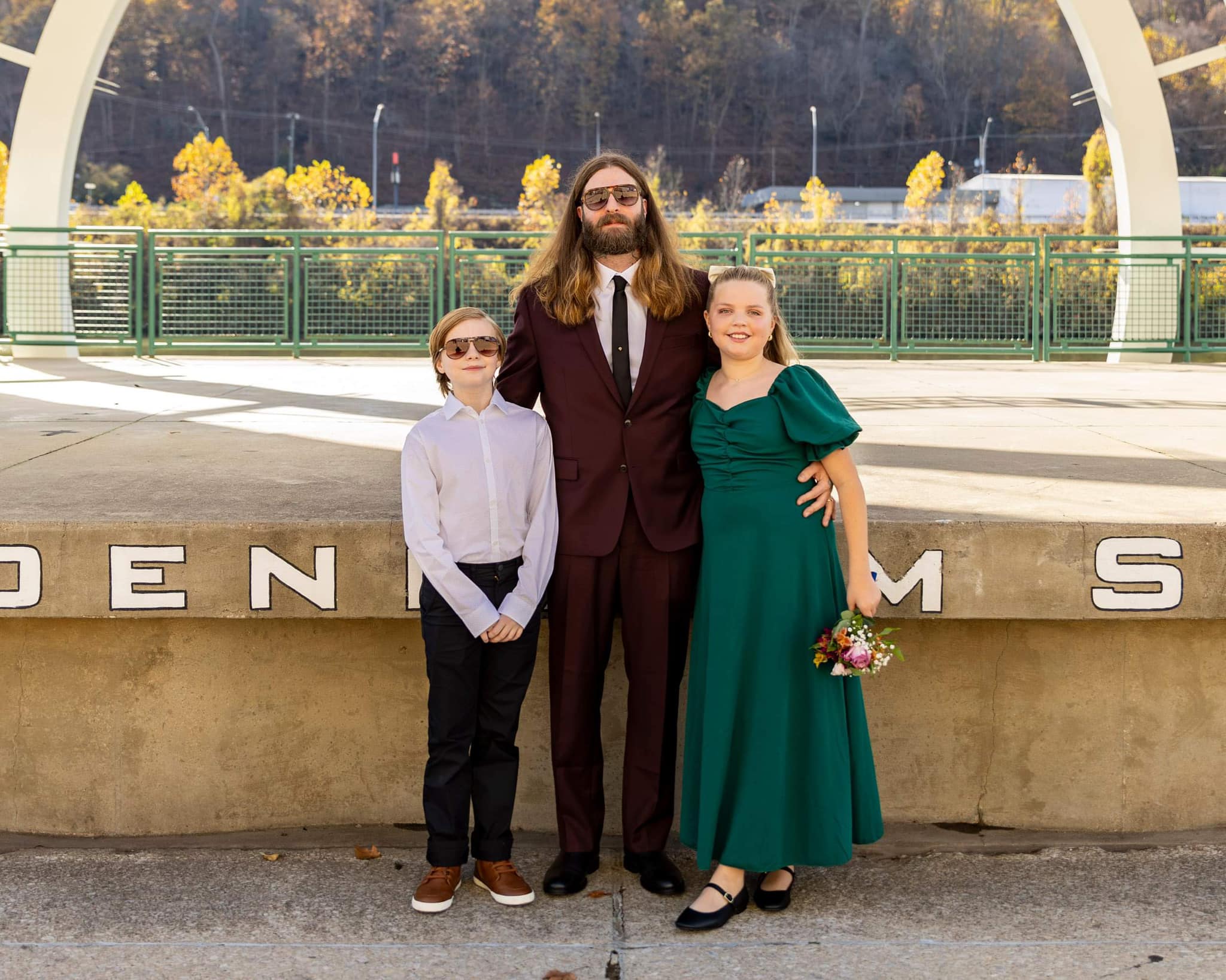 Bishop Baylor, who owns a barber shop, has two kids (shown above posing with their dad), plays in a rock band called “Vile Mind,” and wrestles, appreciates that perspective.