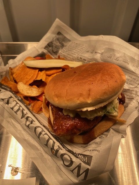 “We wanted a menu that’s approachable but with a global spin,” explains Jason Nerenberg, Vice President of GVBC and Hawk Knob Appalachian Cider. “We do Cantonese-inspired bratwurst, an Indian lamb curry, and the special burger tonight is a play on Mexican street corn, elote.”