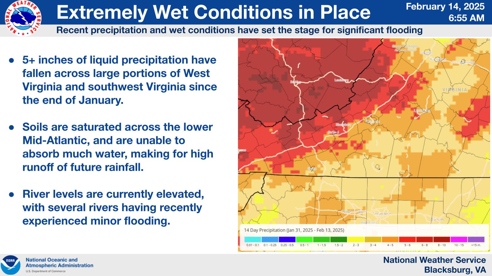 “We are still planning for a 17-foot crest,” Brown says, “but the Alderson crest has dropped to 15 due to a decreased rainfall forecast as it pushes further north.”