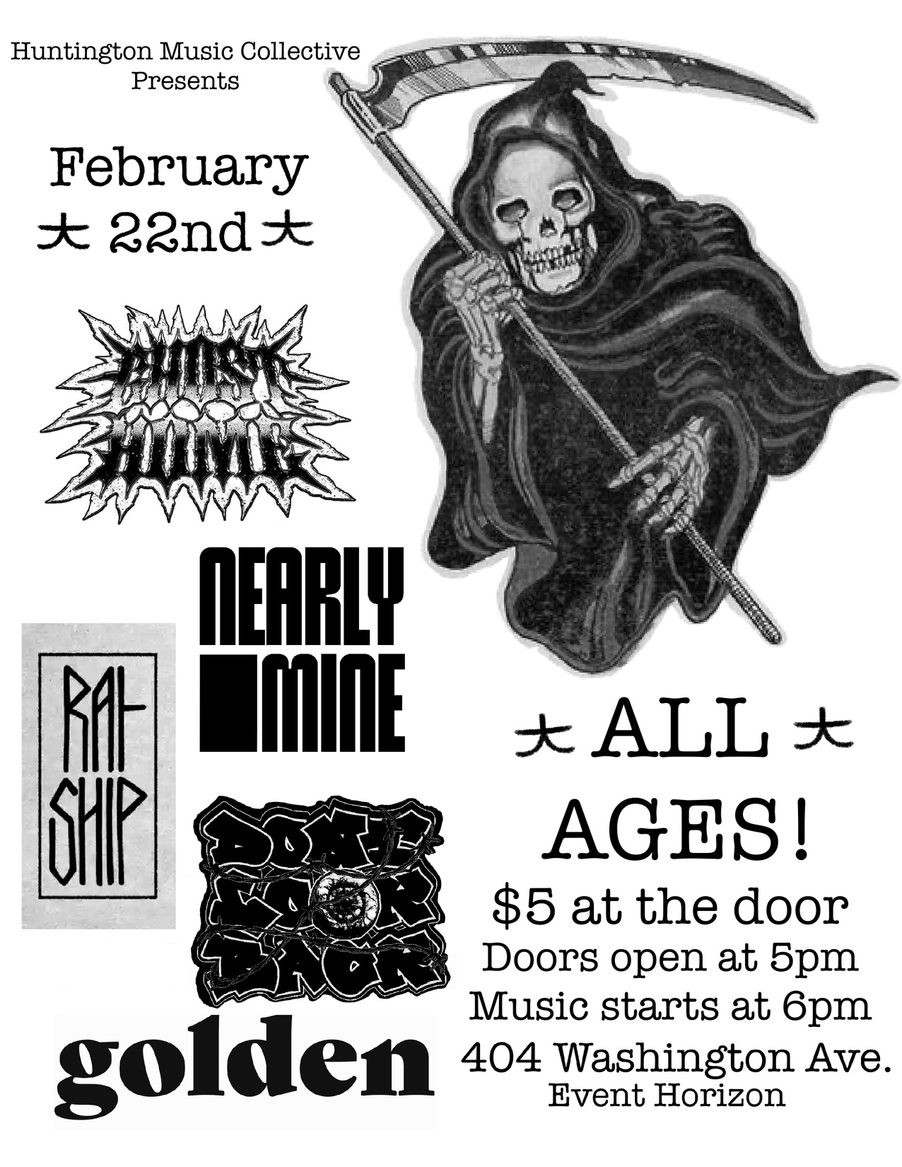 The February 22 show includes performers Nearly Mine, Don’t Look Back, Ghost Home, Golden and Rat Ship.