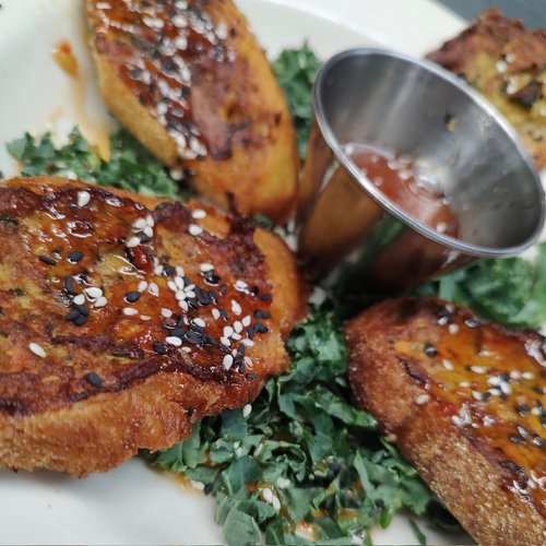 Shrimp Toast with shallots, ginger, garlic, and Asian Seasonings. Sweet Chili Sauce $16