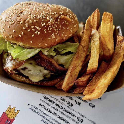 Fried Green Tomato Sandwich with Provolone, Bacon, Lettuce, and Mayo on a Toasted Bun $5.75