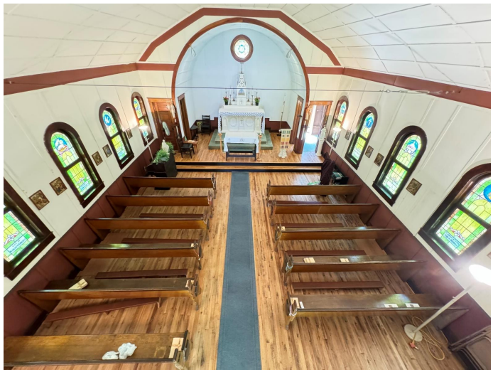 Twice, the chapel was burned down (as a result of sparks from passing steam-driven thrashing machines) and was rebuilt. In 1902, the Church of Mary Immaculate was completed and remains standing today complete with the original stained glass. Total cost? $2,500.