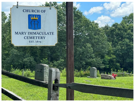In the 1870s, a small Catholic chapel was constructed in the unincorporated community of Williamsburg, Greenbrier County. It served 86 members at the time, who worshipped in their own houses in the remote community prior to the construction of the chapel. They added a graveyard as well, with all the tombstones facing east.