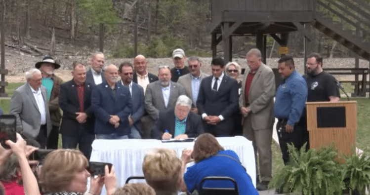 “We’re celebrating freedom and our Constitutional rights,” Morrisey said prior to signing the bills into law. “What could be better than to be in a beautiful state park and celebrate freedom?”