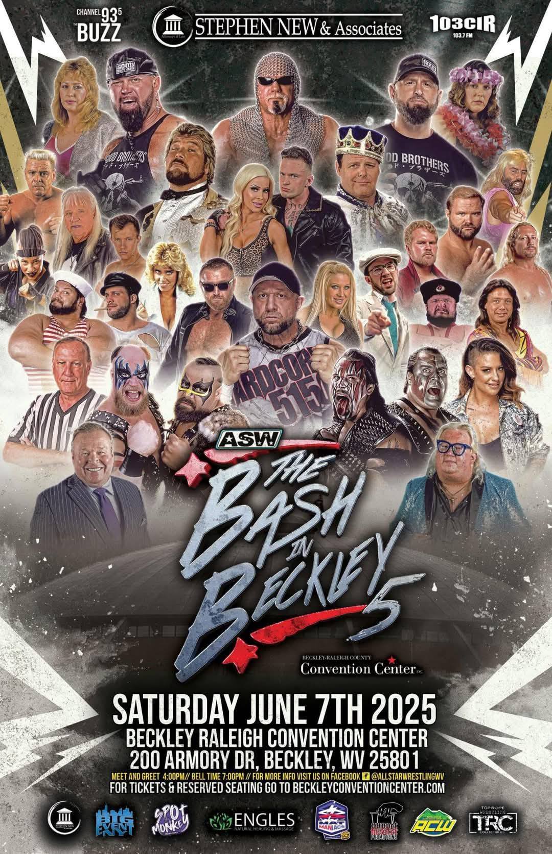 Gary Damron’s All Star Wrestling promotion is back in Beckley for the annual “Bash” show, their biggest of the year. More than 30 stars are set to attend with 10 matches on the card, which kicks off at 7pm. Wrestlers will also be available earlier in the afternoon to sign autographs and meet fans.