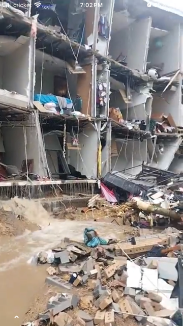 Brandon Swiger is the manager of the Fairmont Village Apartments, which experienced a partial collapse on one side of the building Sunday. The back wall was ripped away by flood waters, exposing the apartment units to the elements from the ground floor to the top.