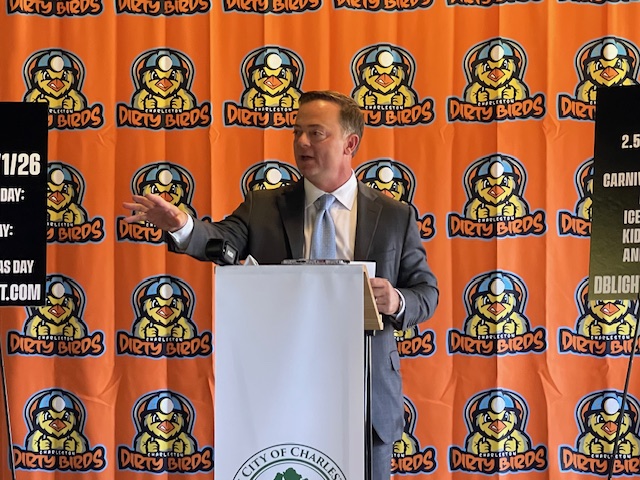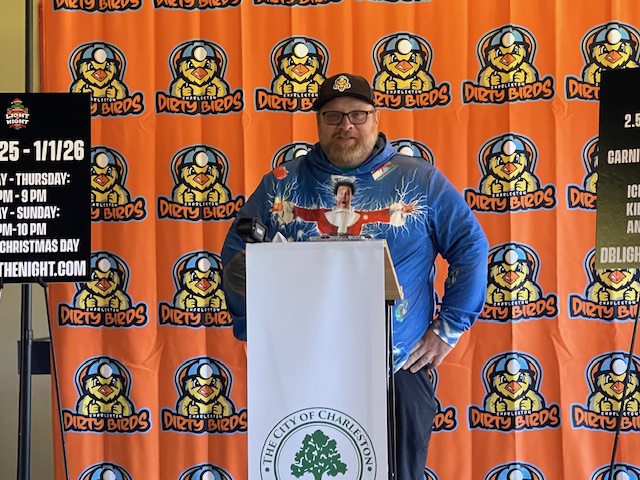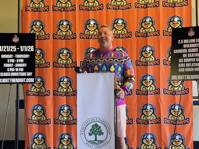 CHARLESTON, W.Va. – At a Tuesday media event held in the Victory Club at GoMart Ballpark, representatives from the Charleston Dirty Birds joined with both city and county officials to announce the operating dates for the third annual Salango Law Dirty Birds Light the Night holiday spectacular.