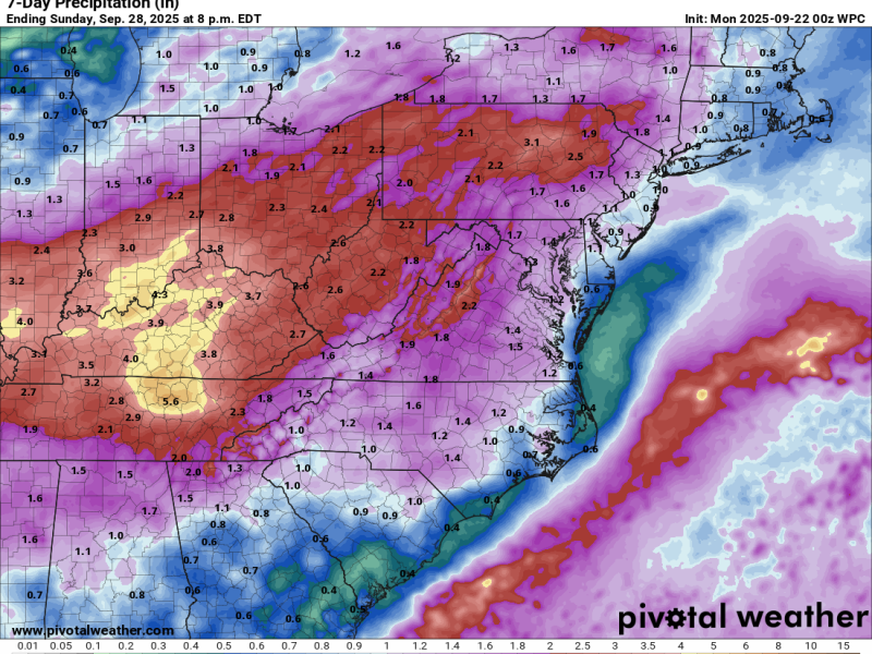 Here’s the 7 day outlook for potential rainfall. A general 1-3” is possible. This is much needed after a really dry August and early September.