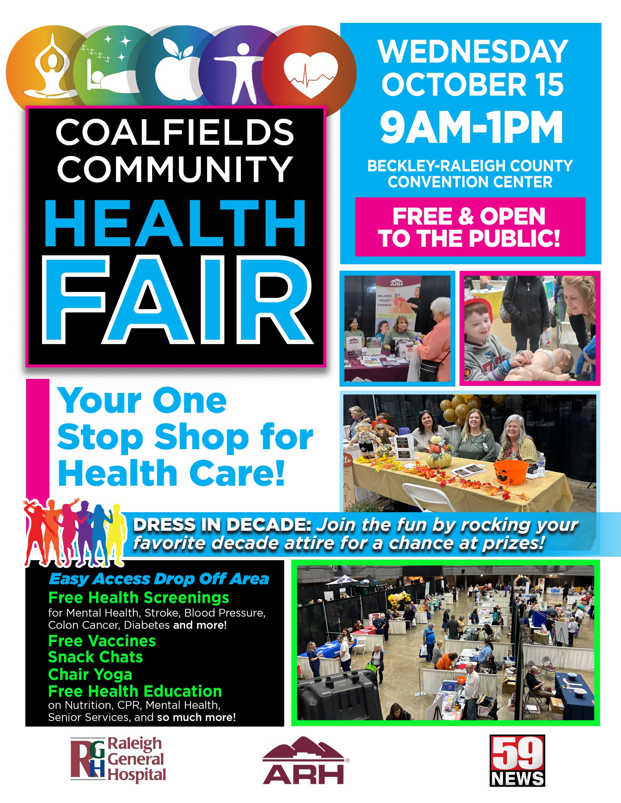 BECKLEY, W.Va.Raleigh General Hospital, Beckley ARH Hospital, 59 News and agencies with the Beckley Partnership for Community Health are excited to present the Coalfields Community Health Fair Oct. 15 at the Beckley-Raleigh County Convention Center.