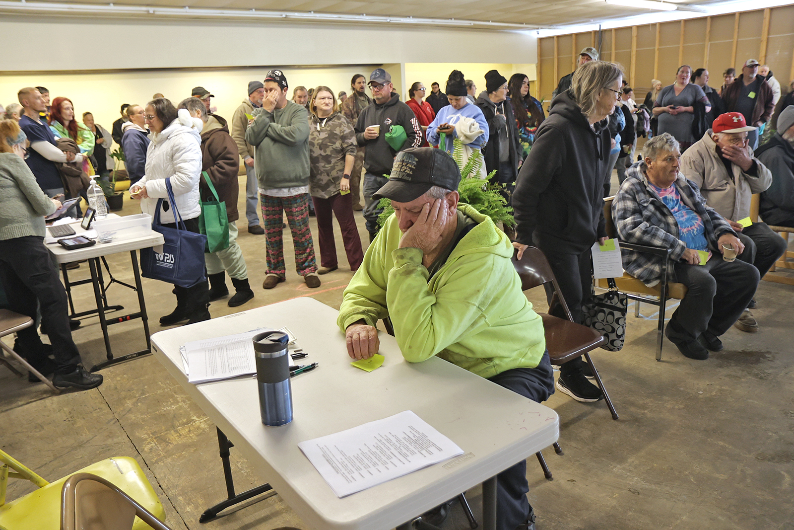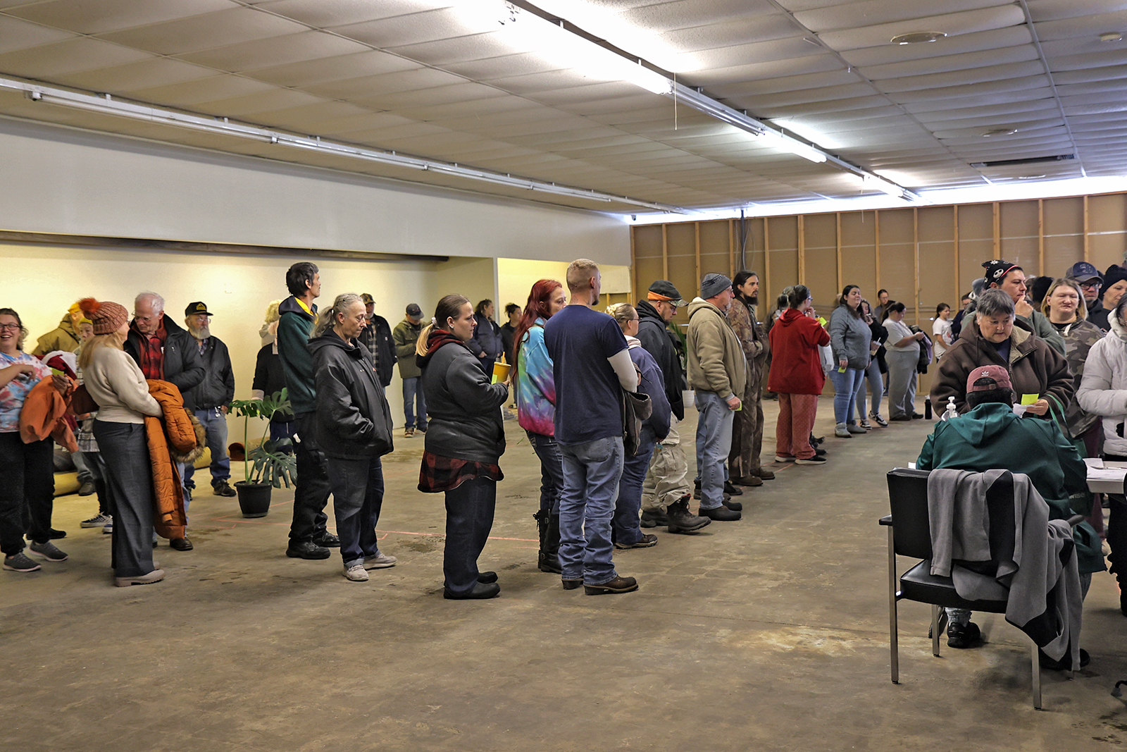 On Tuesday the line at Wellspring began to form about an hour before they opened, and they let people in so they wouldn’t have to stand in the cold. Chairs were provided for those with handicaps, while volunteers prepared to open.