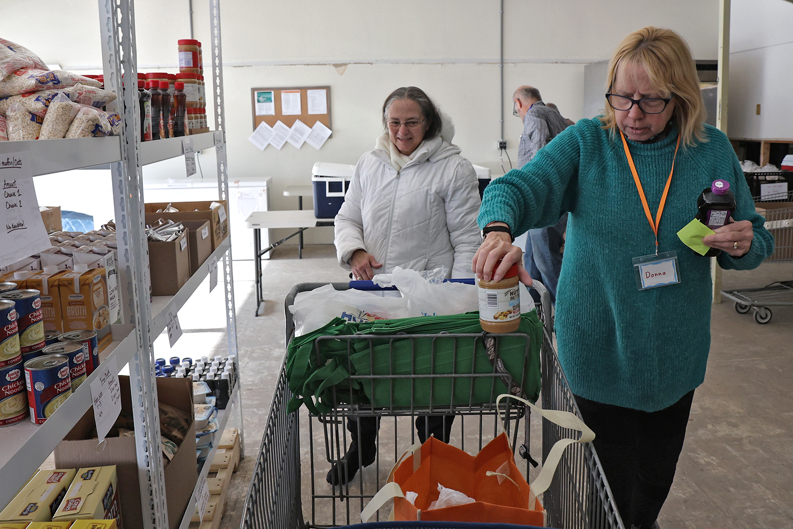The pantry is a “choice style”` pantry, which allows individuals to select which items they want to bring home. Volunteers walk them through the selection process. This week they were able to select items for a Thanksgiving meal.
