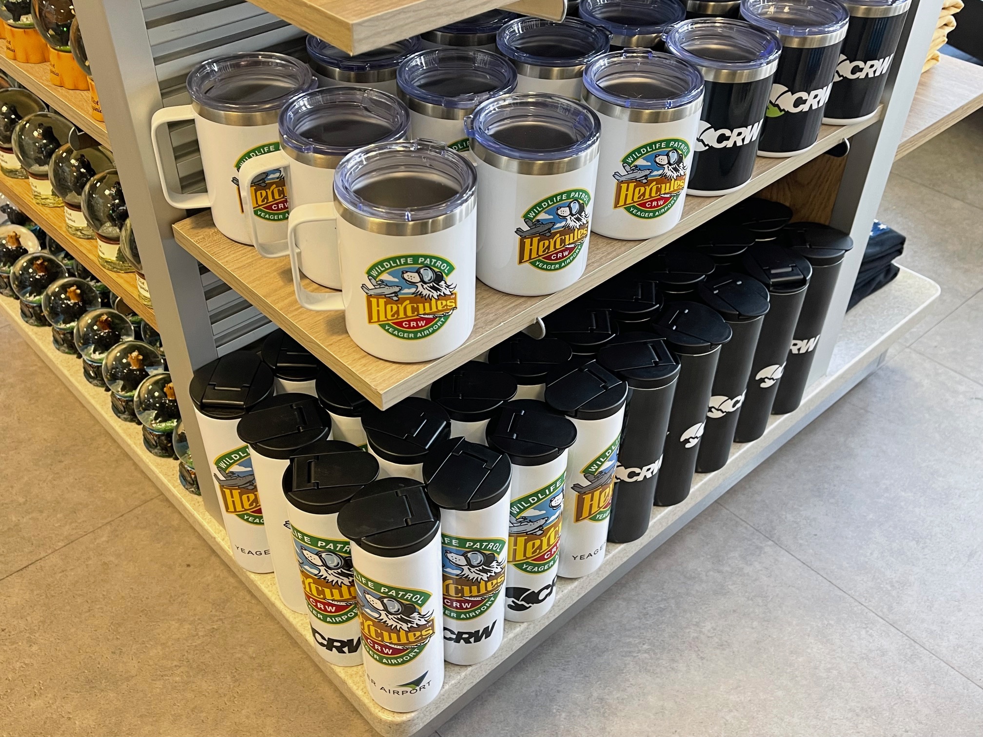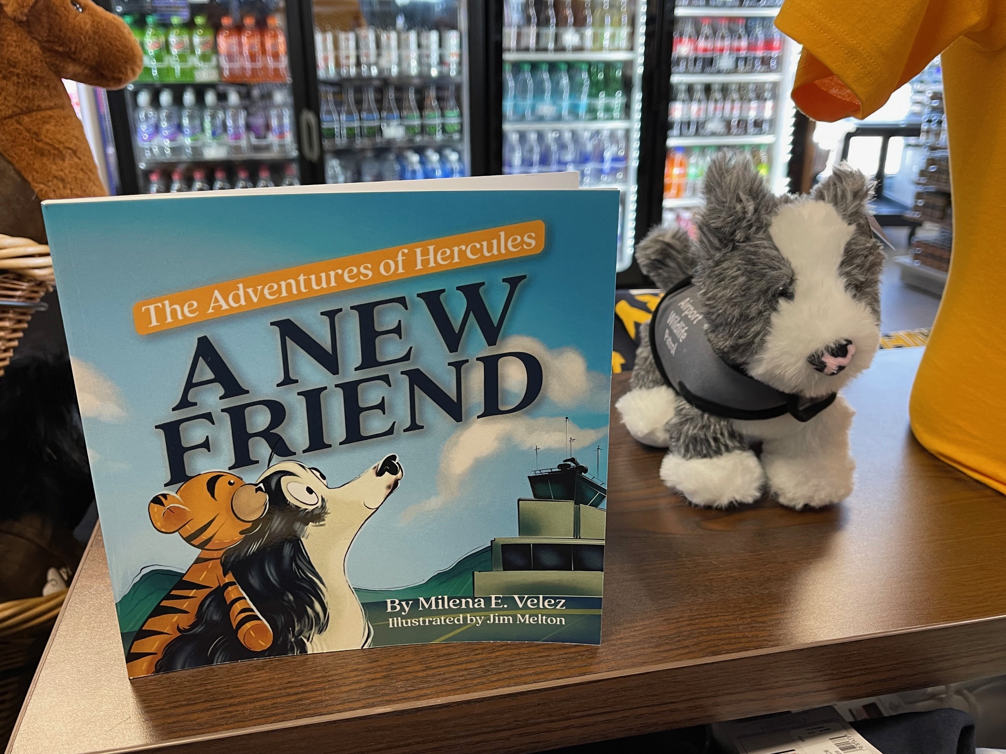 Hercules and Ned have become quite popular after years of loyal service to CRW, and their presence has become an eagerly-anticipated part of any visit to CRW. And for those who can’t get enough of the furry duo, merchandise is available both online and in the airport gift shop, in the form of plush toys, coffee mugs, and stickers. Hercules even has his very own children’s book which regales young readers with his adventures.