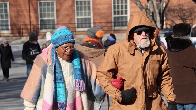 Chris Winston, a local citizen and lead organizer for the event, led marchers through the streets by singing civil rights anthems.