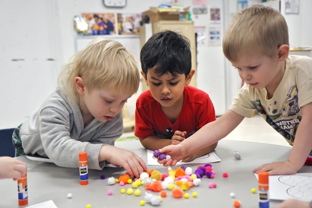 Pre-K students from left, Zane Scott, Obe Cortez and Atlas Bumgarner at the Marvel Center in Rupert Wednesday. Photo by Jenny Harnish.