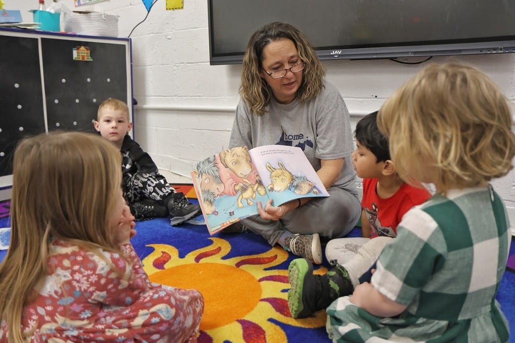 Sybil Smith reads a book to a class of pre-K students at the Marvel Center in Rupert Wednesday. Photo by Jenny Harnish.